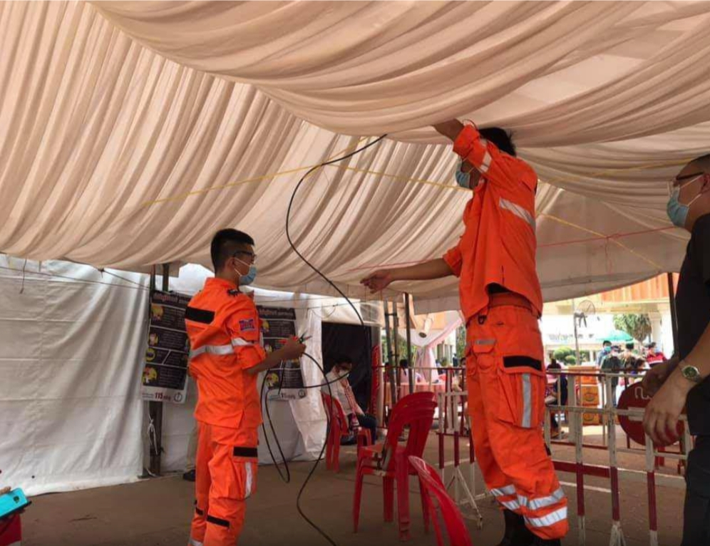 ជំនួយជាម៉ាស ម៉ាស៊ីនបាញ់កម្តៅ និងថ្នាំបាញ់សម្លាប់មេរោគនេះ ទទួលបានពីសមាគមសង្គ្រោះបន្ទាន់កម្ពុជា និងសមាគមសភាពាណិជ្ជកម្មចិនខេត្តហ៊ូណាន។