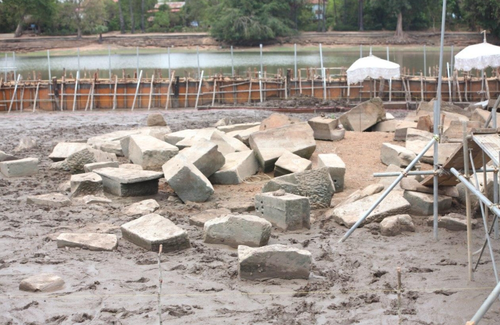 (សៀមរាប)៖ មានការធ្វើកំណាយរកឃើញចម្លាក់អណ្ដើកធំមួយនៅខាងក្រោមប្រាសាទកណ្ដាលស្រះស្រង់ នាថ្ងៃទី០៦ ខែឧសភា ឆ្នាំ២០២០នេះ ខណៈដែលក្រុមការងារបុរាណវិទូនៃអាជ្ញាធរអប្សរាកំពុងធ្វើកំណាយនៅការដ្ឋានជួសមហស្ចារ្យណាស់! កាយឃើញចម្លាក់អណ្ដើកធំមួយនៅកណ្ដាលស្រះស្រង់ ដោយក្រុមការងាររបស់អាជ្ញាធរជាតិអប្សរាជុលប្រាសាទនៅកណ្ដាលស្រះស្រង់នោះ។