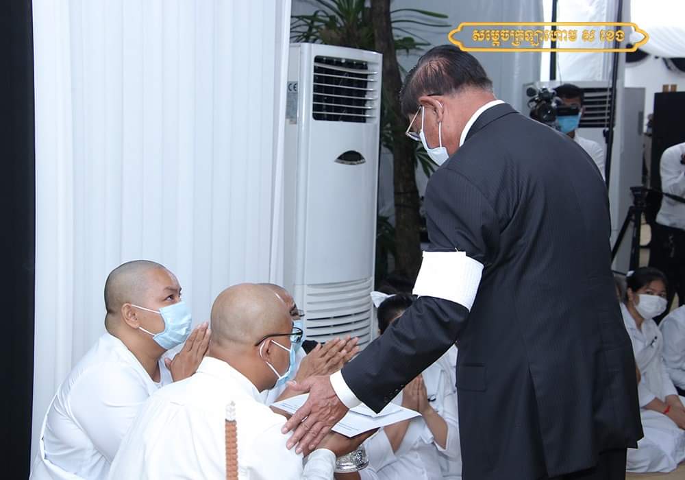 បន្ទាប់មក សម្ដេចក្រឡាហោមឧបនាយករដ្ឋមន្ត្រី បាន អញ្ជើញប្រគល់ជូនលោកជំទាវ សួស ណារ៉ា ព្រមទាំងក្រុមគ្រួសារ នូបបច្ច័យចូលរួមក្នុងពិធីបុណ្យសពឯកឧត្តមទេសរដ្ឋមន្ត្រី ហ៊ឹម ឆែម និងបានបន្តអញ្ជើញដឹកនាំប្រតិភូក្រសួងមហាផ្ទៃ ចុះហត្ថលេខាលើសៀវភៅក្រាំងមាស ដែលសម្ដេចបានសរសេរចារទុកជាកិច្ចចុងក្រោយ នៃពិធីគោរពវិញ្ញាណក្ខន្ធសពឯកឧត្តមទេសរដ្ឋមន្ត្រី ហ៊ឹម ឆែម។