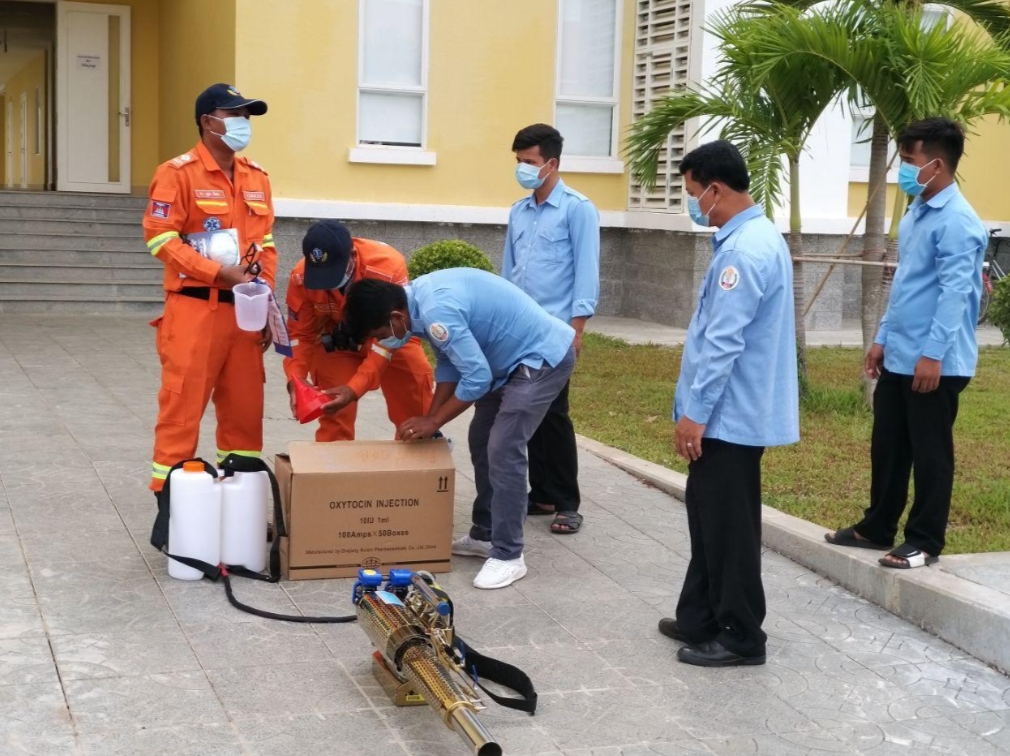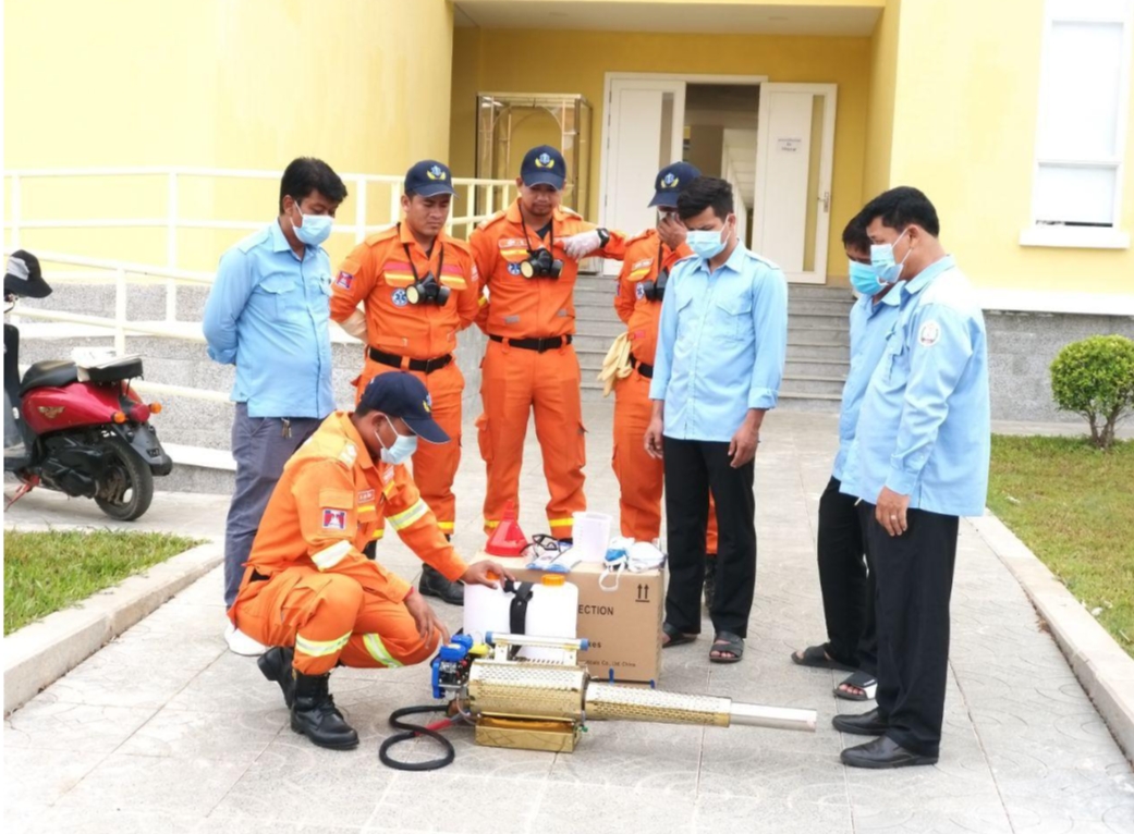 ក្រុមសង្គ្រោះបន្ទាន់៧១១ ចុះបាញ់ថ្នាំសម្លាប់មេរោគកូវីដនៅតាមគោលដៅសំខាន់ៗក្នុងខេត្តព្រៃវែង