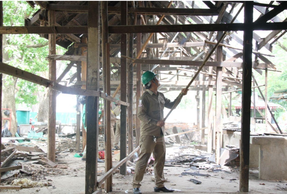 (សៀមរាប)៖ អាជីវករលក់ដូរនៅមុខប្រាសាទអង្គរវត្ត បាបន្តចូលរួមជាមួយ អាជ្ញាធរជាតិអប្សរាដោយស្ម័គ្រចិត្តរុះរើតូបលក់វត្ថុអនុស្សាវរីយ៍ និងភោជនីយដ្ឋានធំៗចំនួន២ កន្លែងជាថ្មីទៀតនៅ ជាប់ស្ពានអណ្ដែតទឹកនិងនៅជិតបន្ទប់អនាម័យនៃបរិវេណ ប្រាសាទអង្គរវត្តនាព្រឹកថ្ងៃទី១០ ខែមិថុនានេះ។