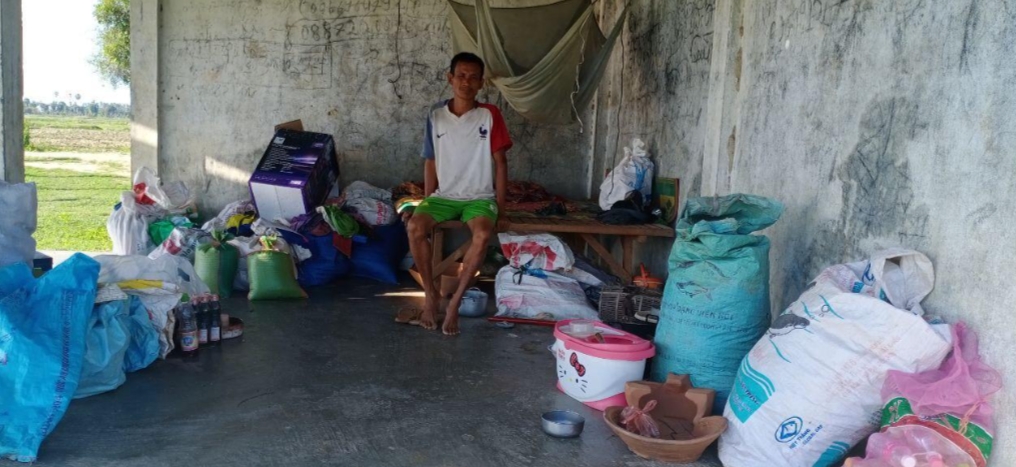 ឆ្លើយទៅនឹងសំណួររបស់អ្នកយកព័ត៌មានយើង ដែលសួរលោកយាយថា ហេតុអីបានជាលោកយាយនាំកូនប្រុសម្នាក់ មកស្នាក់នៅក្នុងសាលាបុណ្យទីនេះ លោកយាយបានរៀបរាប់ថា គឺកូនប្រុសច្បង របស់គាត់បានបណ្ដេញគាត់ចុះពីលើផ្ទះ២នាក់ និងកូនប្រុសពៅ។ គាត់ក៏បាននាំនាំកូនប្រុសពៅស្ពាយបង្វិច ខោអាវ និងអីវ៉ាន់កំប៉ិកកំប៉ុក ដើរចេញពីផ្ទះដោយពុំមានគោលដៅពិតប្រាកដនោះឡើយ លុះមកដល់សាលាបុណ្យក្បែរផ្សារព្រៃខ្មែរនេះ គាត់ក៏បានស្នាក់នៅទីនេះតែម្ដង ពោលគឺបានមកស្នាក់នៅទីនេះជាង១០ថ្ងៃមកហើយ ឯការហូបចុកគឺបានមកពីអ្នកជិតខាងគេផ្ដល់ជូនគាត់។