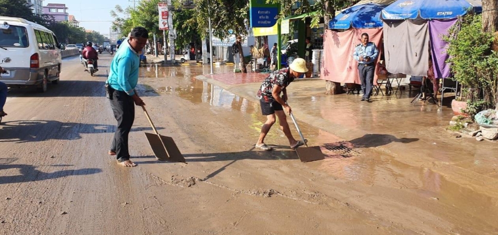 អាជ្ញាធរខណ្ឌមានជ័យ ធ្វើកិច្ចសន្យាជាមួយម្ចាស់ដេប៉ូខ្សាច់ ក្រោយបូមខ្សាច់បណ្តាលឱ្យលិចហូរហៀរលើផ្លូវជាតិលេខ២