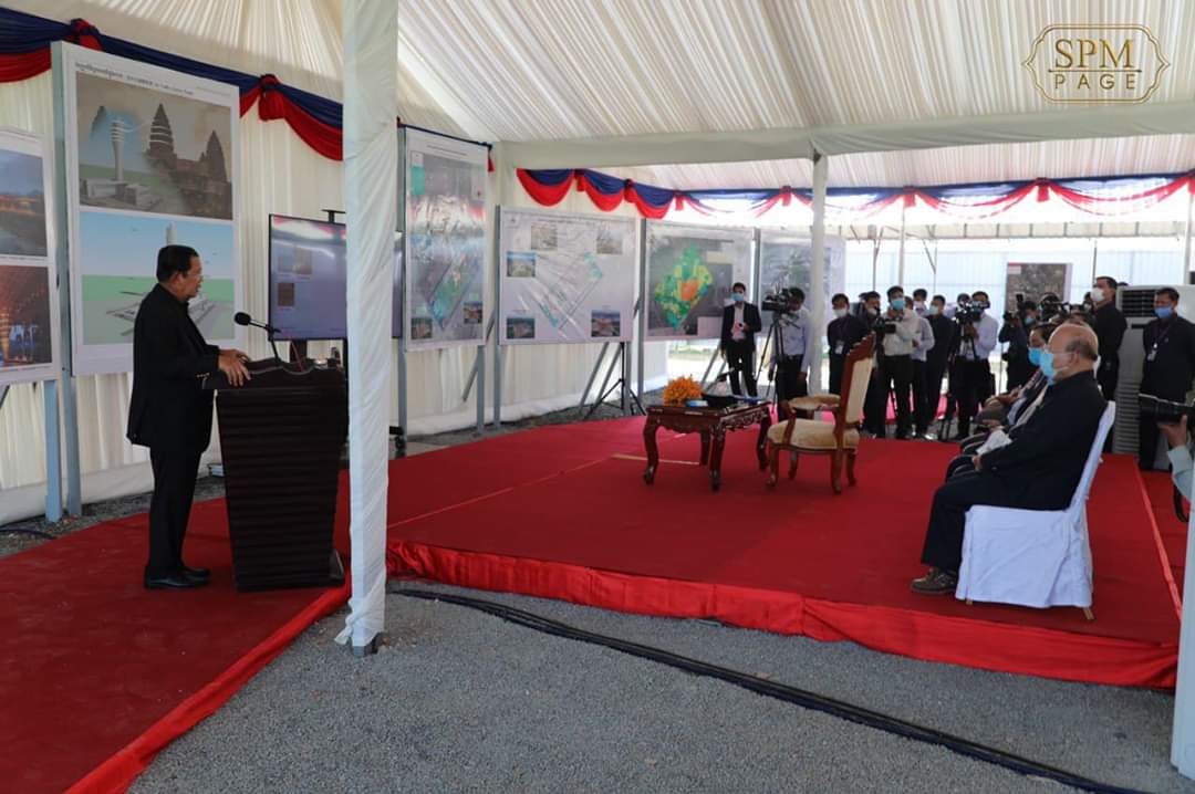 សម្តេចតេជោ ហ៊ុន សែន ពិតជារីករាយដែលបានអញ្ជើញមកពិនិត្យព្រលានយន្តហោះថ្មីនេះ។ សម្តេចតេជោក៏បានថ្លែងការកោតសរសើរដល់គណៈកម្មការសាងសង់ ដែលបានប្រឹងប្រែងសម្របសម្រួលដោះស្រាយបញ្ហាផ្សេងៗ ដើម្បីសម្រួលដល់ការសាងសង់។ សម្តេចតេជោនាយករដ្ឋមន្ត្រី បានថ្លែងថាបញ្ហា ជំងឺកូវីដ១៩ មិនបានធ្វើឱ្យប៉ះពាល់ដល់ដំណើរការអភិវឌ្ឍហេដ្ឋរចនាសម្ព័ន្ធនៅក្នុងប្រទេសកម្ពុជា រួមទាំងព្រលានយន្តហោះថ្មីផងដែរ។ សម្តេចតេជោ ហ៊ុន សែន បានថ្លែងថា ការរក្សាបាននូវដំណើរការសាងសង់ប្រព័ន្ធហេដ្ឋារចនាសម្ព័ន្ធទាំងនេះ ក៏រួមចំណែកផ្តល់ការងារដល់ប្រជាពលរដ្ឋដែលកំពុងជួបវិបត្តិការងារដោយសារជំងឺកូវីដ១៩ផងដែរ នេះគឺជាគោលដៅមួយសំខាន់សំរាប់ចក្ខុវិស័យកម្ពុជាឆ្នាំ២០៥០ ក្នុងការបំពេញតម្រូវការ។