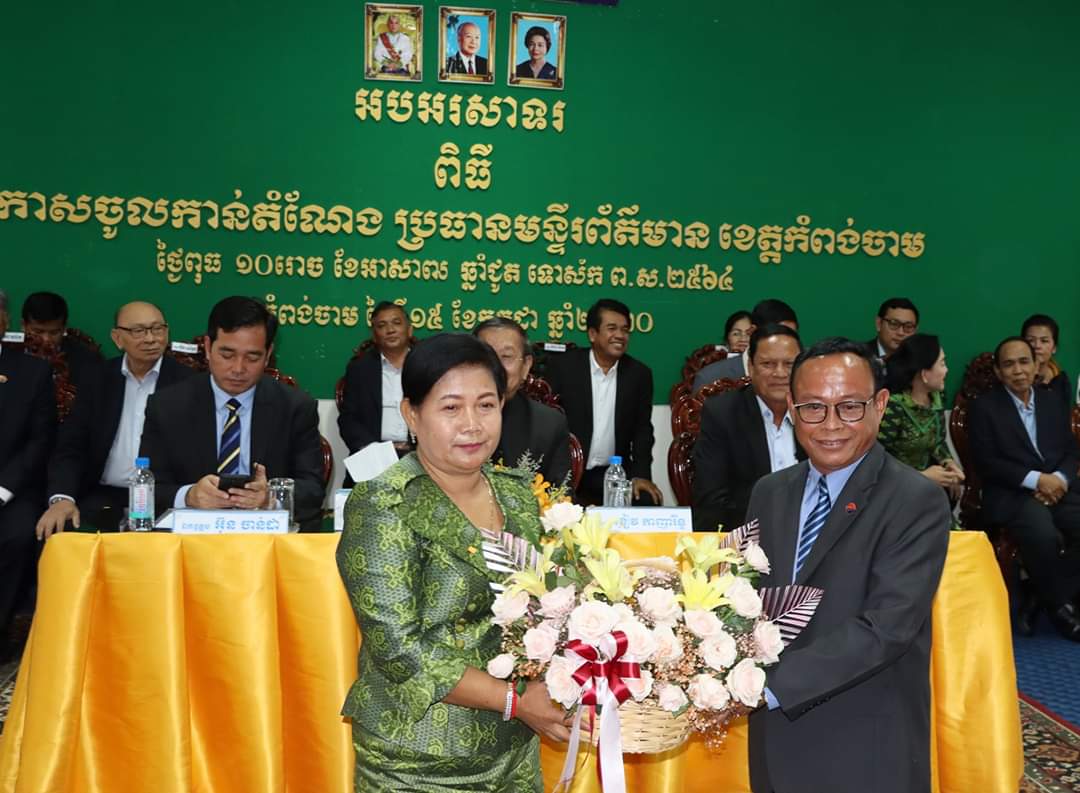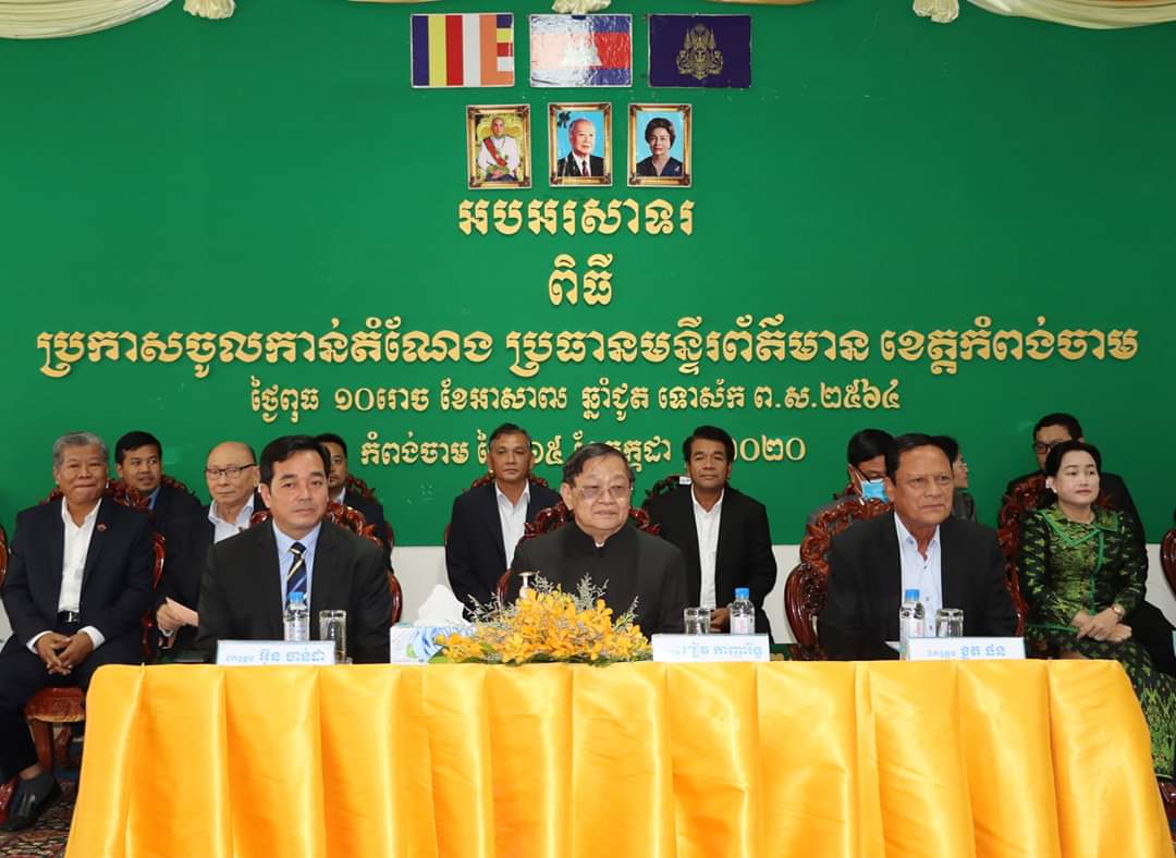 កំពង់ចាម៖នៅព្រឹកថ្ងៃទី១៥ ខែកក្កដា ឆ្នាំ២០២០ នៅសាលាខេត្តកំពង់ចាម ឯកឧត្ដម ខៀវ កាញារីទ្ធ រដ្ឋមន្ត្រីក្រសួងព័ត៌មាន ឯកឧត្ដម អ៊ុន ចាន់ដា អភិបាលនៃគណអភិបាលខេត្តកំពង់ចាម ឯកឧត្ដម ខ្លូត ផន ប្រធានក្រុមប្រឹក្សាខេត្ត បានអញ្ជើញចូលរួមជាអធិបតីក្នុងពិធីប្រកាសចូលកាន់តំណែងប្រធានមន្ទីរព័ត៍មានខេត្តកំពង់ចាម ដោយមានការអញ្ជេីញចូលរួមពីឯកឧត្តម លោកជំទាវ លោក លោកស្រី ប្រតិភូក្រសួងព័ត៌មាន អភិបាលរងខេត្ត មន្ទីរ-អង្គភាពជុំវិញខេត្ត អភិបាលក្រុង ស្រុក និងមន្ត្រីរាជការមន្ទីរព័ត៌មានខេត្តជាច្រើនរូបទៀត។