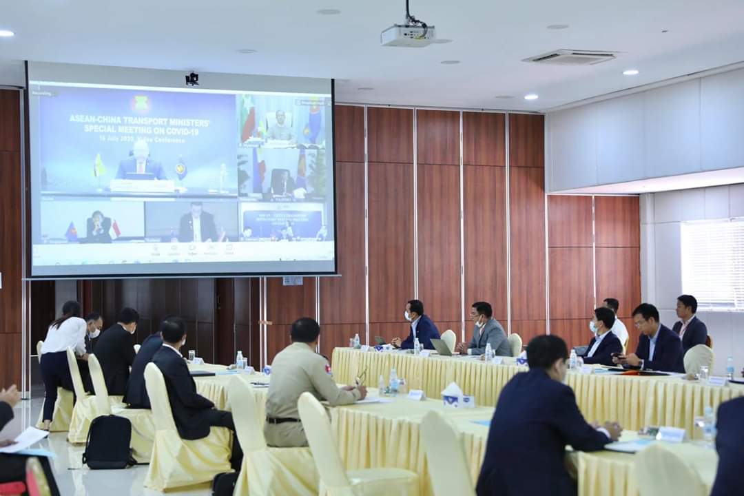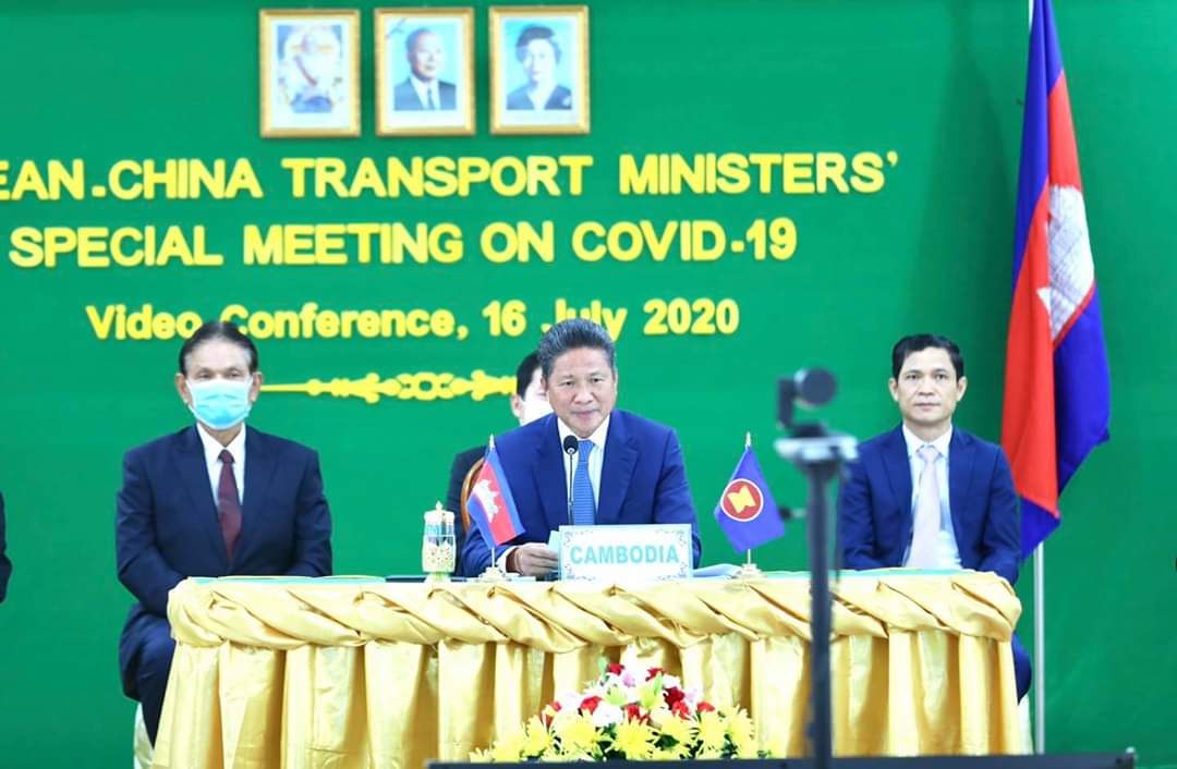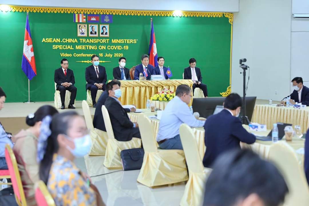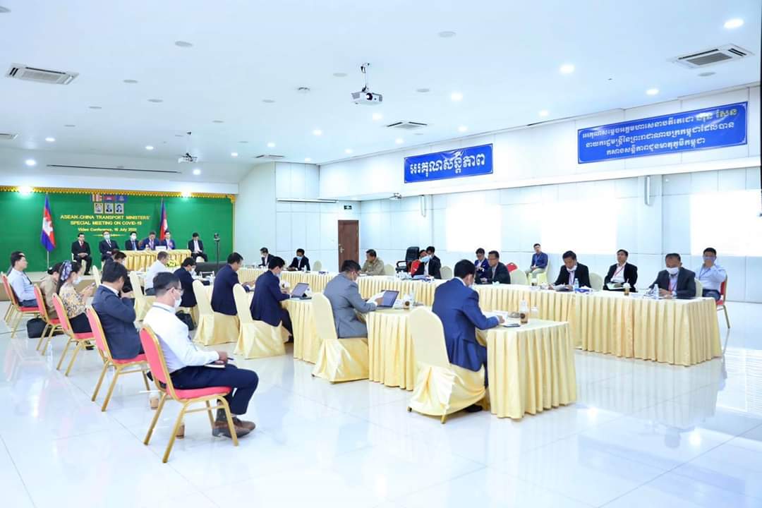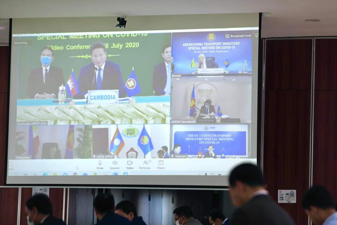 ភ្នំពេញ៖ ថ្ងៃព្រហស្បតិ៍ ១១រោច ខែអាសាឍ ឆ្នាំជូត ទោស័ក ព.ស.២៥៦៤ ត្រូវនឹងថ្ងៃទី១៦ ខែកក្កដា ឆ្នាំ២០២០ នៅទីស្ដីការក្រសួង ឯកឧត្តម ស៊ុន ចាន់ថុល ទេសរដ្ឋមន្ត្រី រដ្ឋមន្ត្រីក្រសួងសាធារណការ និង ដឹកជញ្ជូន បានដឹកនាំគណៈប្រតិភូក្រសួងចូលរួមកិច្ចប្រជុំរដ្ឋមន្ត្រីដឹកជញ្ជូនអាស៊ាន-ចិន តាមរយៈវីដេអូពីចម្ងាយទាក់ទងនឹងវិធានការប្រយុទ្ធប្រឆាំងមេរោគកូវីដ១៩ក្នុងវិស័យដឹកជញ្ជូន (the ASEAN-CHINA Transport Ministers’ meeting on COVID-19)។