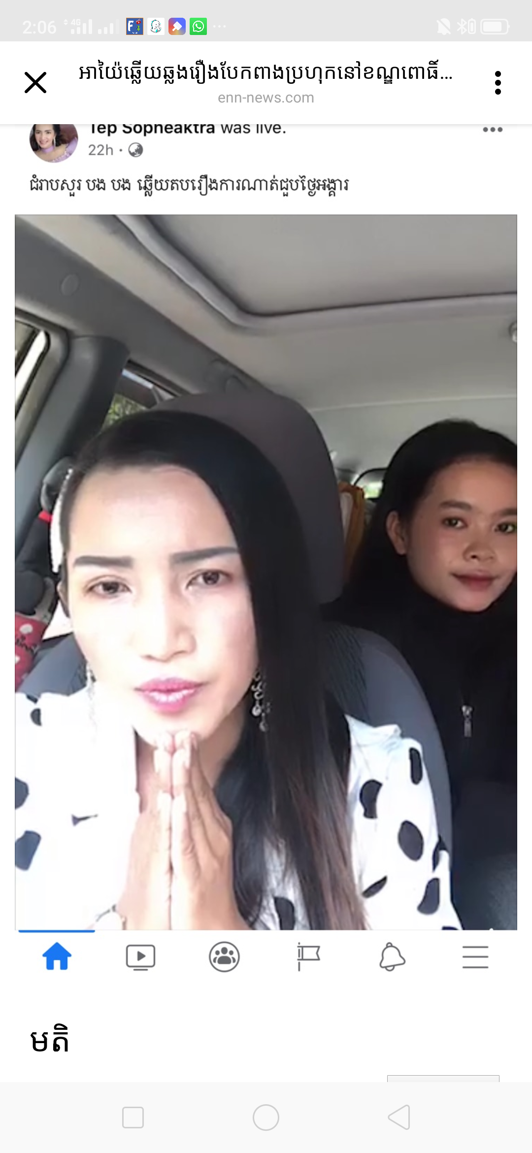ក្រោយពីលោកអភិបាលខណ្ឌហែម ដារិទ្ធិ បង្ហោះសារខាងលើតែប៉ុន្មាននាទីប៉ុណ្ណោញ កញ្ញាទេព សុភក្រ្តា ក៏បានបន្តការឡាយជាថ្មីម្ដងទៀតនៅក្នុងរថយន្តដោយមានក្រុមការងារមួយចំនួននៅជាមួយផងដែរ។នៅក្នុងឡាយសូ នាងបាននិយាយថា ប៉ុន្មានថ្ងៃនេះមានបងប្អូនអ្នកសារព័ត៌មានឆាតសួរនាងច្រើន ពីបញ្ហាដែលបានកើតឡើង ហើយនាងសុំទោសដែលអត់បានឆ្លើយតបព្រោះនាងជាប់រវល់ថតរឿង ហើយនាងអត់គេចទេ។នាងបានឆ្លើយតបទៅនិងការលើកឡើងរបស់លោកហែម ដារិទ្ធិថា នៅថ្ងៃអង្គារ៍ទី២១ ខែកក្កដា ឆ្នាំ២០២០ ខ្ញុំនឹងអញ្ជើញ សាមីខ្លួនរួមនិងអ្នកពាក់ព័ន្ធ មកធ្វើការដោះស្រាយនៅសាលាខណ្ឌ នោះគឺនាងមិនបានដឹងនិងសន្យាថានាងនិងទៅទេ ហើយកាលពីថ្ងៃទី១៧ ខែកក្កដា ជំនួយការរបស់លោកអភិបាលខណ្ឌរូបនោះបានឆាតរកនាងដោយសុំជួបថ្ងៃច័ន្ទ តែនាងថានាងរវល់ ជំនួយការរូបនោះថាថ្ងៃអង្គារ៍ក៏បានដែរ ហើយនាងបានតបវិញថាថ្ងៃអង្គារ៍នាងអត់ទាន់ដឹងទេ ព្រោះនាងអត់ទាន់ដល់ផ្ទះនាងនៅតាមផ្លូវចាំនាងមើលសៀវភៅសិន បើយ៉ាងម៉េចៗនាងឲ្យដំណឹងមុន១ថ្ងៃ នាងអត់បានសន្យាថាថ្ងៃនោះនិងទៅជួបគាត់ទេ។ អ្វីដែលជាការចាប់អារម្មណ៍ថែមទៀតនោះគឺនាងបានព្រលយពាក្យ លោកអភិបាលខណ្ឌធ្វើបែបនេះធ្វើឲ្យនាងខ្លាចណាស់ រឿងអយុត្តិធម៌៧ខែហើយហើយសម្រាប់នាង ហើយនាងជាជនជាប់ចោទដែលត្រូវហៅពេលណាទៅពេលនិងមែន អត់ទេណា ចុះរឿងមុននិងម៉េចក៏មិនដោះស្រាយឲ្យនាងម៉េចបានមកបង្ខំពេលនេះទៅវិញ។នាងក៏បាននិយាយទាំងយំស្រែកថា រឿងប៉ះពាលត្រូវតែនិយាយហើយមកបង្ខំនាងមែននិងហៅទៅដោះស្រាយនៅក្នុងសាលាខណ្ឌទៀត នាងសូមប្រាប់ថា រាល់ថ្ងៃនេះនាងមិនមែនជាកូនចៅរបស់លោកអភិបាលខណ្ឌទេ ហើយកន្លែងដែលត្រូវនិយាយគ្នាមានច្រើនទៀត៕