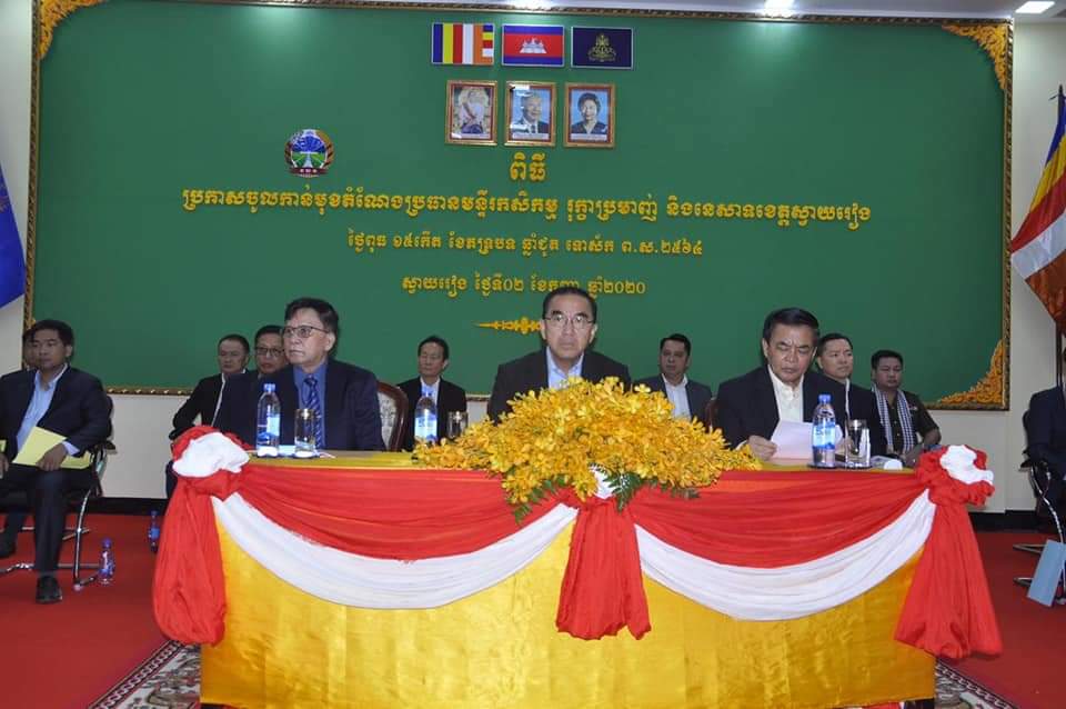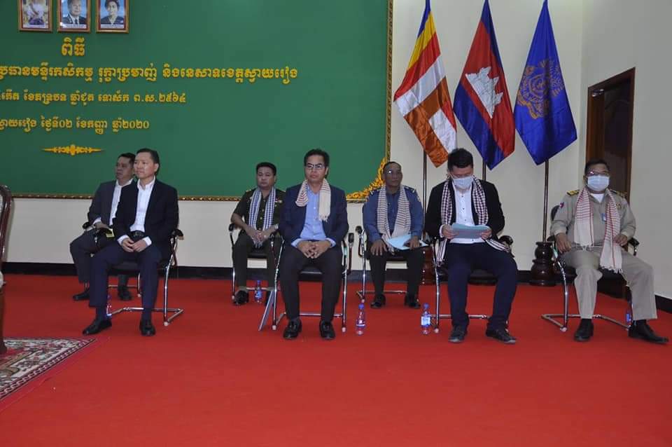 (ខេត្តស្វាយរៀង) ÷ ឯកឧត្តម វេង សាខុន រដ្ឋមន្ត្រីក្រសួងកសិកម្ម រុក្ខាប្រមាញ់ និងនេសាទ ,ឯកឧត្តម ជុំ ហាត ប្រធានក្រុមប្រឹក្សាខេត្ត និងឯកឧត្តម ម៉ែន វិបុល អភិបាល នៃគណៈអភិបាលខេត្តស្វាយរៀង បានអញ្ជើញជាអធិបតីក្នុងពិធីប្រកាសតែងតាំងលោក សុខ សុទ្ធាវុធ ជាប្រធានមន្ទីរកសិកម្ម រុក្ខាប្រមាញ់ និងនេសាទ ខេត្តស្វាយរៀង ជំនួសលោក ថាច់ រតនា ដែលត្រូវចូលនិវត្តន៍ នាព្រឹកថ្ងៃទី ០២ ខែកញ្ញា ឆ្នាំ២០២០នេះ នៅសាលប្រជុំធំសាលាខេត្តស្វាយរៀង ។