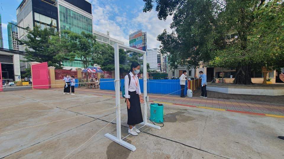 ភ្នំពេញ៖ នៅក្នុងវិទ្យាល័យបាក់ទូក ដែលជាវិទ្យាល័យមួយនៅក្នុងរាជធានីភ្ឋំពេញ គឺសង្កេតឃើញថា គណៈគ្រប់គ្រងសាលារៀន លោកគ្រូ អ្នកគ្រូ បានដឹកនាំសកម្មភាពសម្អាតបរិស្ថានសាលារៀន បាញ់ថ្នាំកម្ចាត់មេរោគ រៀបចំនូវហេដ្ឋារចនាសម្ព័ន្ធសមស្រប ពិសេសធានានូវគម្លាតសុវត្ថិភាព តាមគោលការណ៍ណែនាំរបស់ក្រសួងអប់រំ ដែលដាក់ឱ្យអនុវត្តតាមស្តង់ដា SOP របស់ក្រសួងសុខាភិបាល ដើម្បីធានាបានថា ការបើកដំណើរការនេះឡើងវិញប្រកបដោយសុវត្ថិភាព ដោយមានការត្រួតពិនិត្យត្រឹមត្រូវ ដើម្បីបង្ការការឆ្លងរីករាលដាលនៃជំងឺកូវីដ-១៩។
