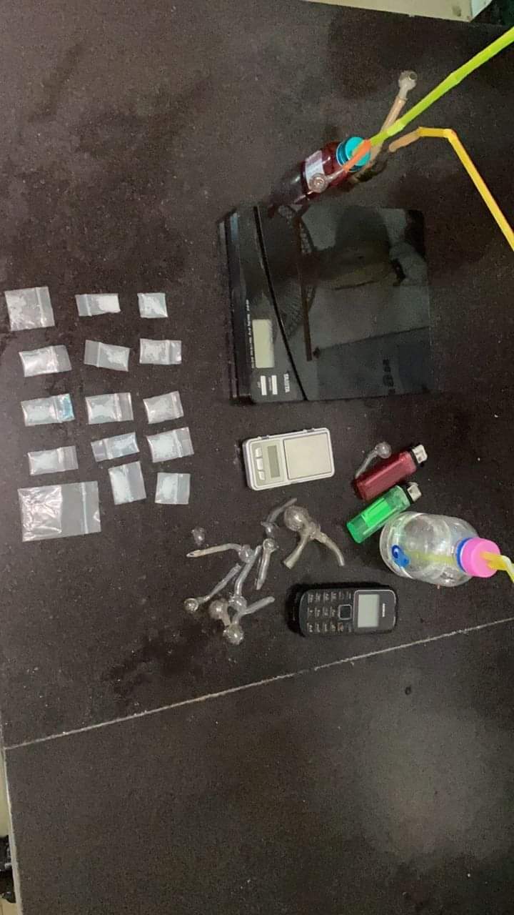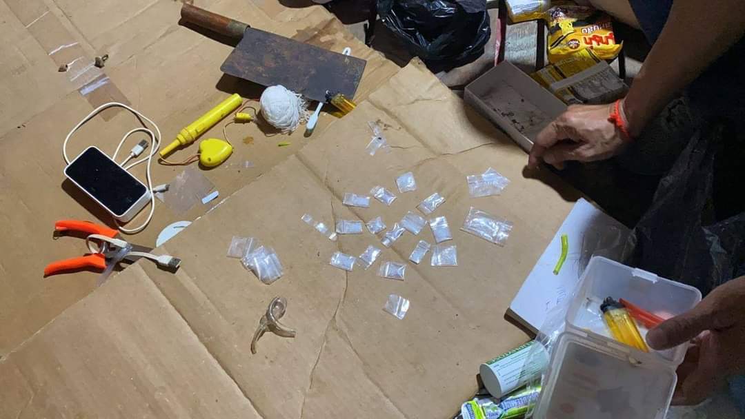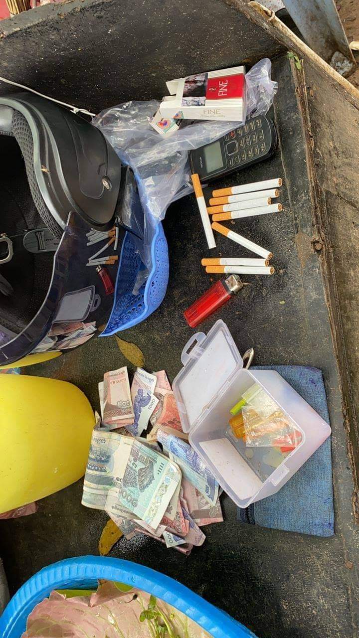 វត្ថុតាងសមត្ថកិច្ចដកហូតរួមមាន ម្សៅក្រាមពណ៌សថ្លាសង្ស័យជាថ្នាំញៀន១៥កញ្ចប់តូច ជញ្ជីងសម្រាប់ថ្លឹងថ្នាំញៀនចំនួន២ ដបភ្ជាប់ជាមួយទុយោសម្រាប់ជក់គ្រឿងញៀនចំនួន២ ទូរស័ព្ទម៉ាកNokia1280 ចំនួន១គ្រឿង ដែកកេះចំនួន២ដើម។