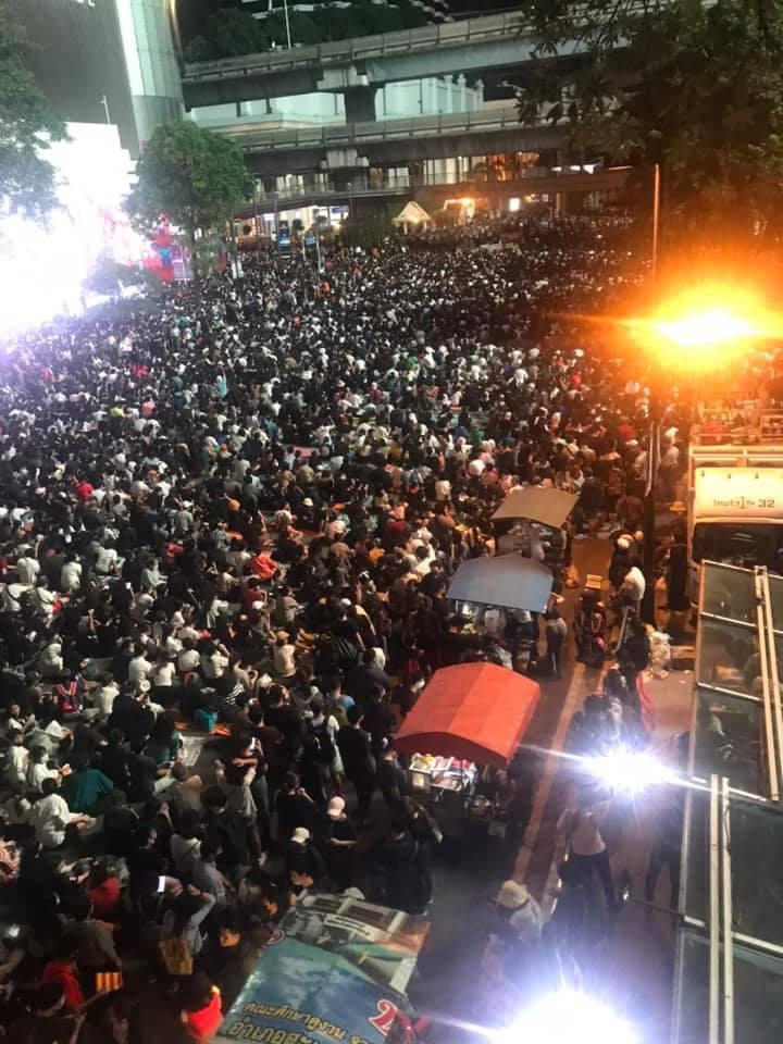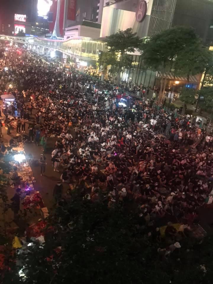 ក្រុមបាតុករប្រមាណ ៣០០០ នាក់នៅក្នុងសង្កាត់ផ្សារធំនៃទីក្រុងបាងកក បានទាមទារឱ្យមានការដោះលែងអ្នកតវ៉ាដែលត្រូវបានចាប់ខ្លួន ហើយអ្នកខ្លះបានស្រែកជេរប្រមាថប្រឆាំងនឹងលោកនាយករដ្ឋមន្រ្តីប្រាយុទ្ធចាន់អូចា មុនពេលពួកគេត្រូវបានបំបែកដោយប៉ូលីស។
