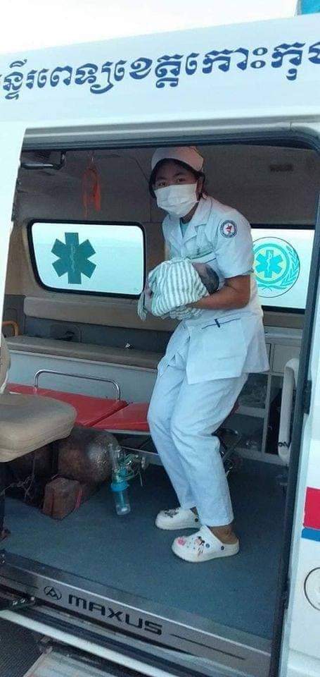 ខណៈកំពុងធ្វើដំណើរ ទៅមន្ទីរពេទ្យ ក្រោយទទួលបានព័ត៌មាន ក្រុមគ្រូពេទ្យនៃមន្ទីរពេទ្យ ខេត្តកោះកុង។