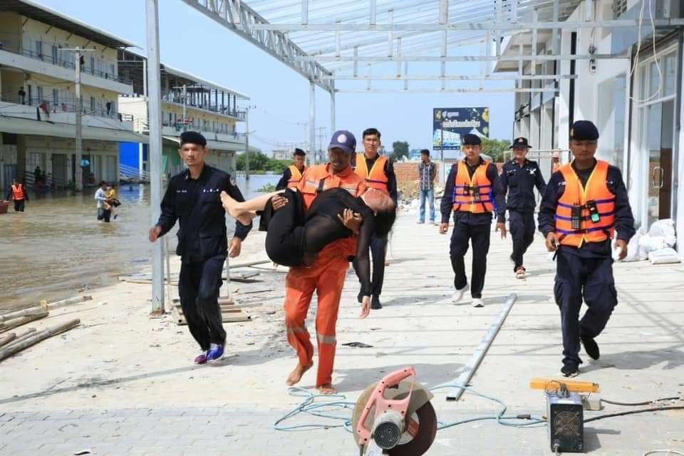 កងពលតូចលេខ៧០ បាននាំគ្នាជួយសង្គ្រោះស្រ្តីម្នាក់ដែលខ្យល់គរដួលក្នុងបន្ទប់ទឹក នៅក្នុងបុរីVIPទី១ ទទួលរងការលិចលង់ដោយទឹកជំនន់ទឹកភ្លៀង