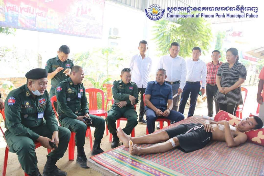 ឯកឧត្តម ឧត្តមសេនីយ៍ឯក ស ថេត អគ្គស្នងការរង និងជាស្នងការនគរបាលរាជធានីភ្នំពេញ បានអញ្ចេីញសួរសុខទុក្ខមន្ត្រីអន្តរាគមន៍ដែលបានរងគ្រោះថ្នាក់ចរាចរណ៍ នៅពេលធ្វេីដំណេីរទៅផ្ទះ ក្រោយពីបញ្ចប់ភារកិច្ចជួយសង្គ្រោះប្រជាពលរដ្ឋរងគ្រោះដោយទឹកជំនន់នៅពេលយប់ថ្ងៃទី១៨ ខែតុលា ឆ្នាំ២០២០