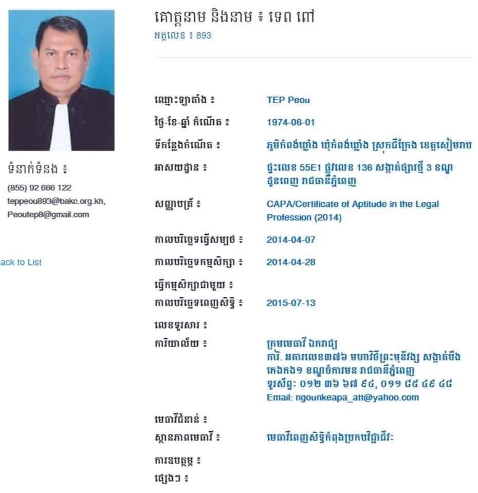 – ដោយឡែក សារព័ត៌មាន យើងក៏បានទំនាក់ទំនងទៅកាន់លេខទូរស័ព្ទ លោកមេធាវី ទេព ពៅ ផ្ទាល់ផងដែរ តែមិនមានអ្នកទទួលទូរស័ព្ទ ។