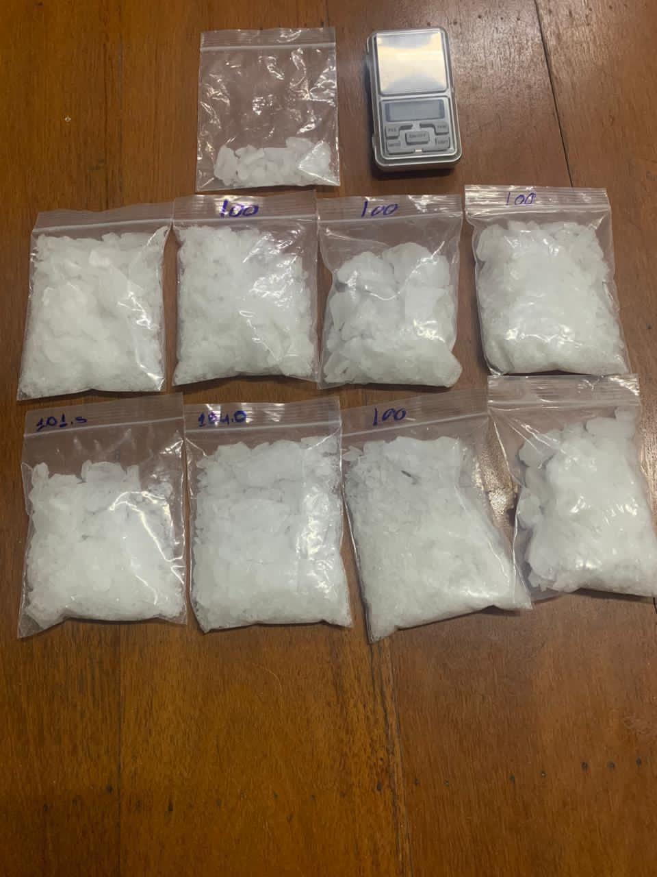 ក្នុងនោះសមត្ថកិច្ចដកហូតវត្ថុតាង រួមមាន៖ ក្រាមពណ៌សរថ្លារចំនួន២០កញ្ចាប់(១០ថង់ធំ)(១០ថង់តូច)។