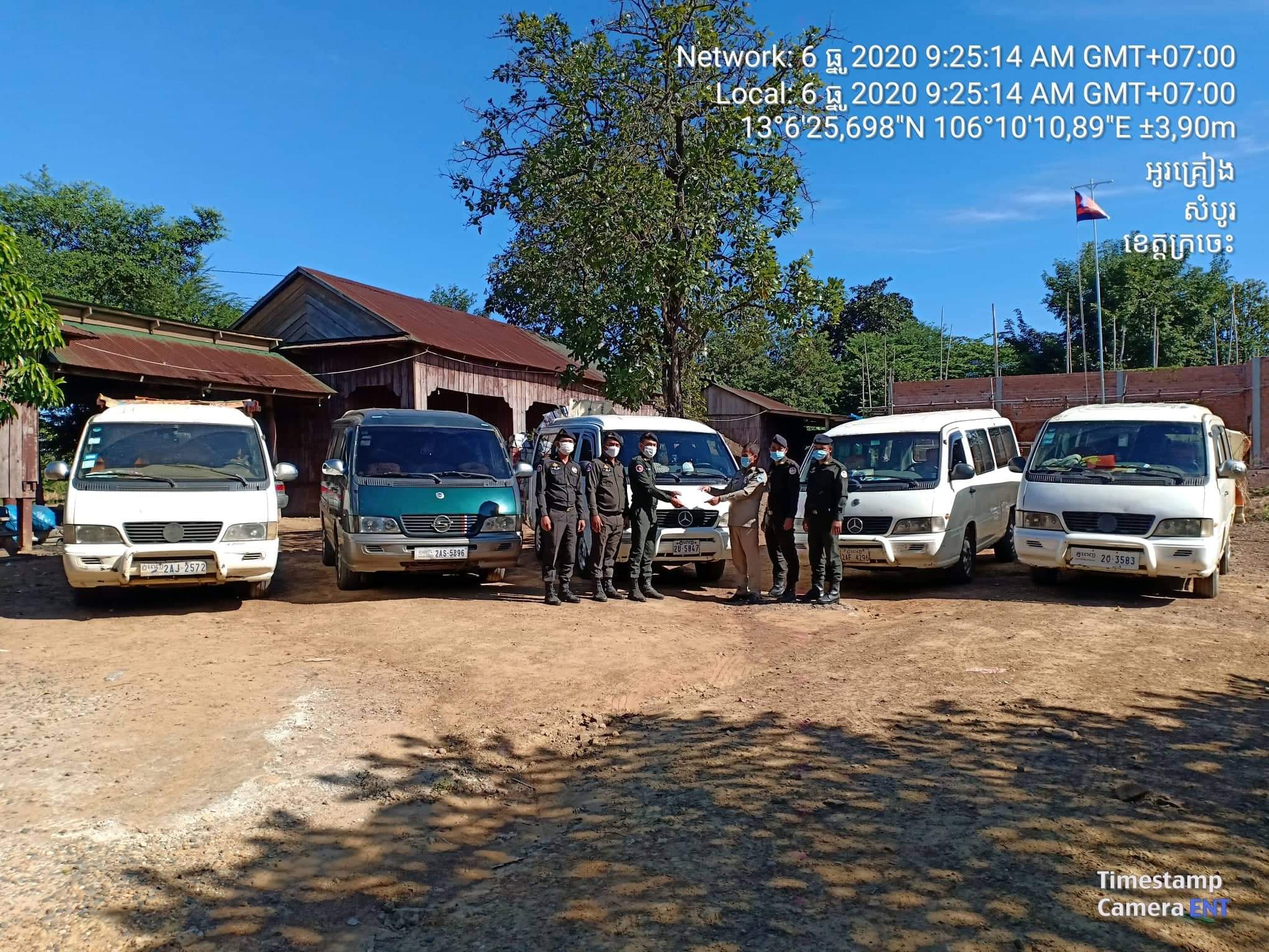 ខេត្តក្រចេះ: នៅវេលាម៉ោង០៤និង៣០នាទី ព្រឹកថ្ងៃទី០៦ ខែធ្នូ ឆ្នាំ២០២០ មានសកម្មភាពក្រុមឈ្មួញរកស៊ីដឹកជញ្ជូនសិប្បកម្មកែច្នៃ គ្មានច្បាប់អនុញ្ញាតត្រឹមចំនួន០៥គ្រឿង ដែលបានដឹកចេញពីខេត្តស្ទឹងត្រែង តាមបណ្ដោយផ្លូវជាតិលេខ៧A បម្រុងយកទៅលក់នៅតាមបណ្ដាខេត្តនានា ត្រូវបានកម្លាំងកងរាជអាវុធហត្ថលើផ្ទៃប្រទេសបានសហការជាមួយកម្លាំងកងរាជអាវុធហត្ថស្នាក់ការសន្តិសុខ៧១០ បានធ្វើការស្ទាក់ ចាប់បានភ្លាមៗចំនួន០៥គ្រឿង នៅចំនុចភូមិអូរព្រះ ឃុំអូរគ្រៀង ស្រុកសំបូរ ខេត្តក្រចេះ