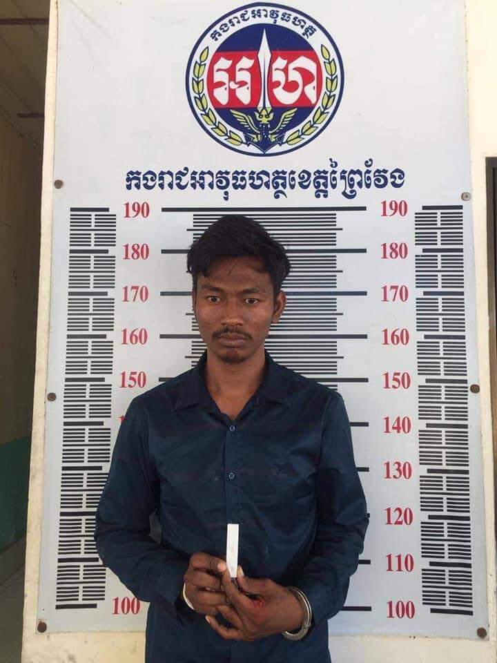 សេចក្ដីរាយការណ៍បានឱ្យដឹងថា៖ ជនត្រូវចោទជាប៉ូលិសរូបនោះឈ្មោះ ធឿន ចាន់រ៉ាវី ភេទប្រុសអាយុ២៩ឆ្នាំ មានទីលំនៅភូមិលេខ៧ សង្កាត់កំពង់លាវ ក្រុងព្រៃវែង (រត់គេចខ្លួន)។