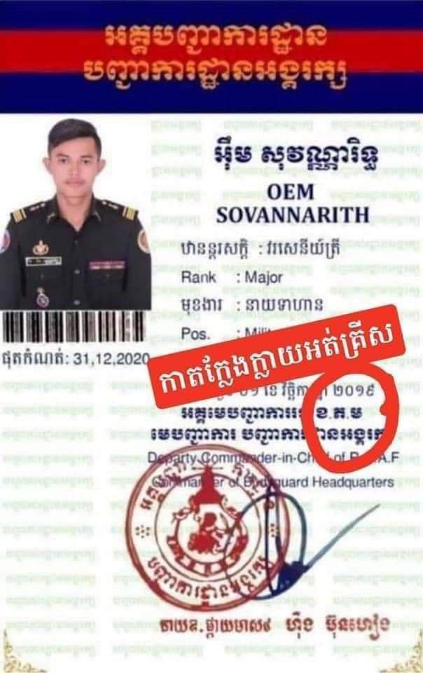 លិខិតបដិសេធរបស់ស្នងការដ្ឋានបុគ្គល-បណ្ដុះបណ្ដាល នៃបញ្ជាការដ្ឋានអង្គរក្ស ដែលបណ្ដាញព័ត៌មាន ទទួលបានអះអាងថា ឈ្មោះ អ៉ឹម សុវណ្ណារិទ្ធ មិនមានឈ្មោះ និងក្របខណ្ឌក្នុងបញ្ជាការដ្ឋានអង្គរក្សនោះឡើយ ហើយប័ណ្ណសម្គាល់ខ្លួនដែលបានចែកចាយនោះ ជាប័ណ្ណសម្គាល់ខ្លួនក្លែងក្លាយ មិនមែនប័ណ្ណដែលចេញដោយបញ្ជាការដ្ឋានអង្គរក្សនោះទេ។