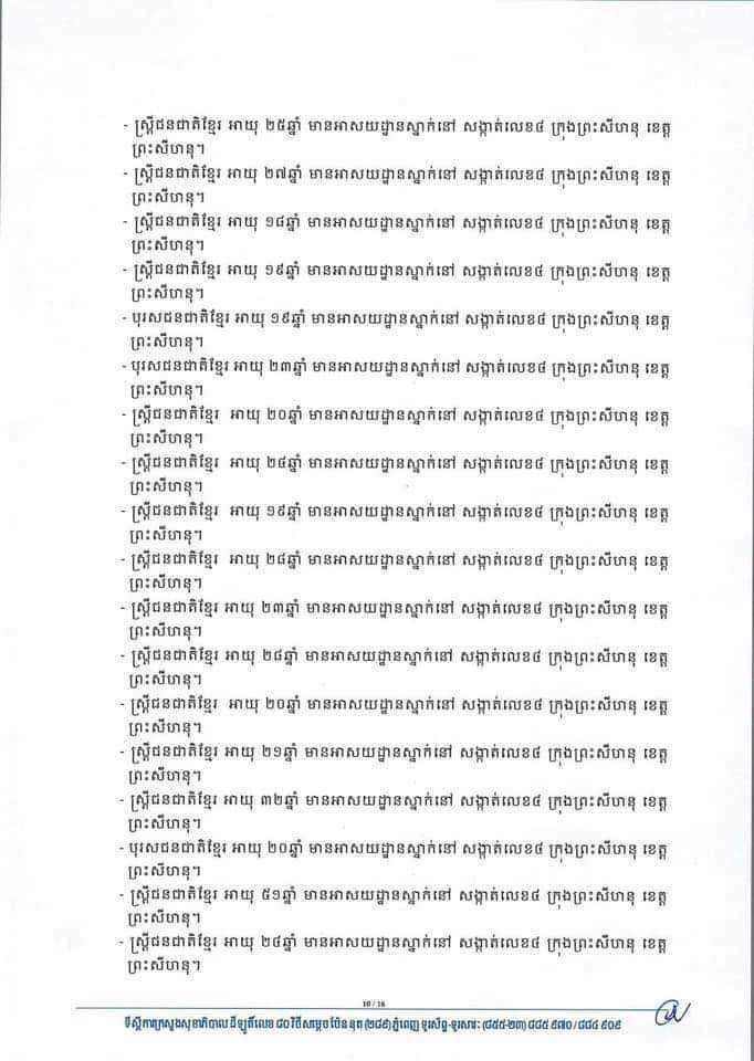 នៅក្នុងចំណោមអ្នកឆ្លងកូវីដ១៩ថ្មីសរុបទាំង១៧៨នាក់ មាននៅតាមខេត្តក្រុងមួយចំនួនដូចជា៖ ព្រះសីហនុ១៤៣នាក់ ភ្នំពេញ២៦ កណ្ដាល៤នាក់ ព្រៃវែង៣នាក់ សៀមរាប១នាក់ និងកំពង់ចាម១នាក់ ផងដែរ។