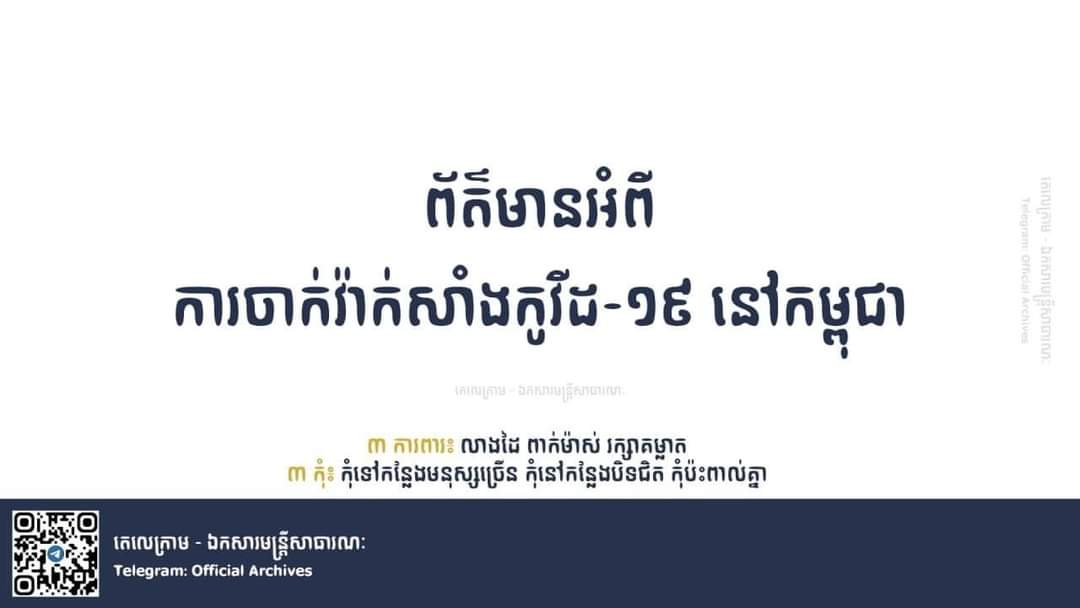 គិតត្រឹមល្ងាច ថ្ងៃទី០១ ខែមេសា ឆ្នាំ២០២១ម្សិលមិញ កម្ពុជាចាក់វ៉ាក់សាំងកូវីដ១៩ បានសរុបចំនួន 430.117នាក់