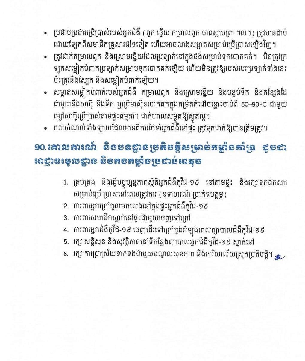 សូមជម្រាបថា៖ ការព្យាបាលអ្នកជំងឺកូវីដ១៩នៅតាមផ្ទះ គឺសម្រាប់តែអ្នកជំងឺស្រាលប៉ុណ្ណោះ។