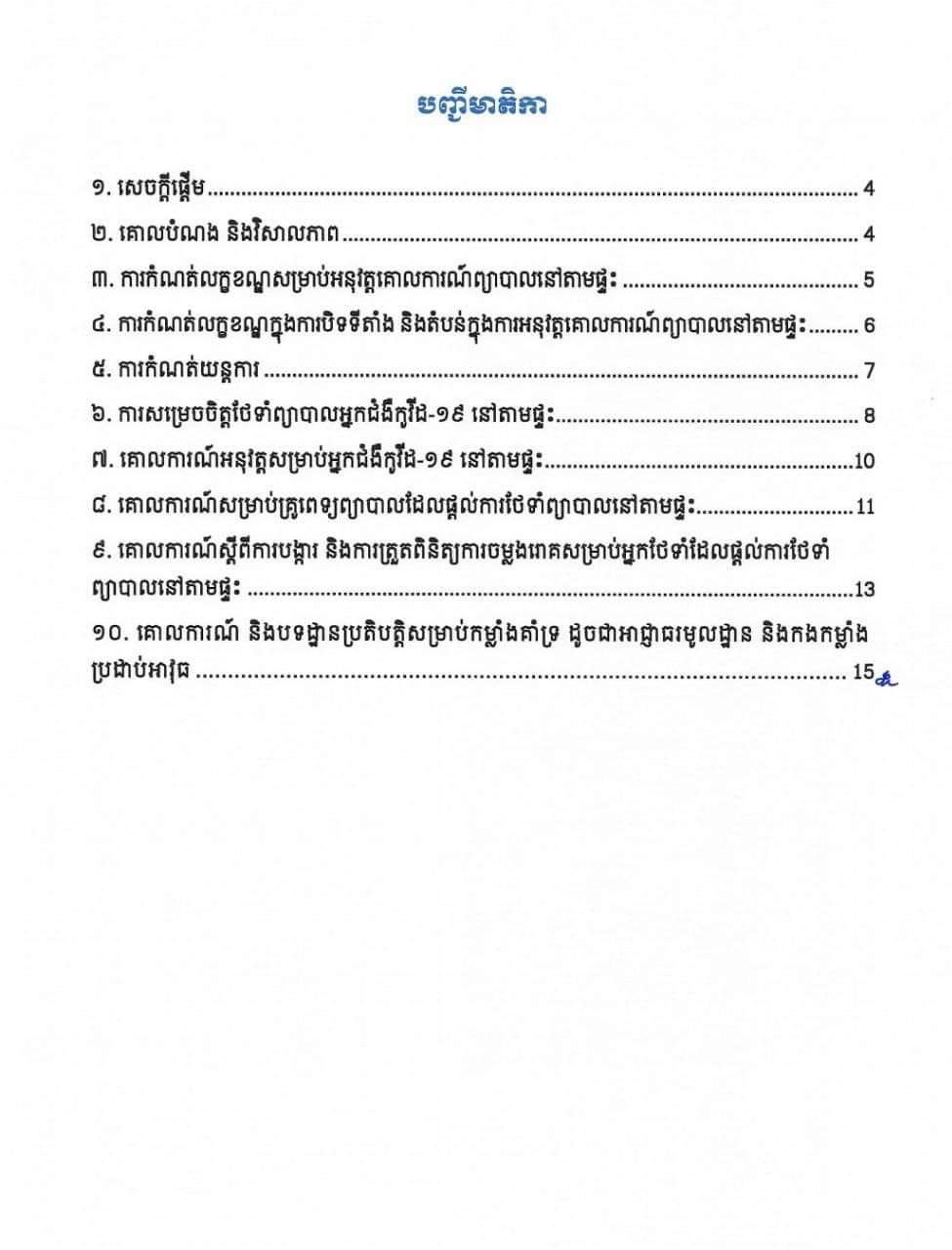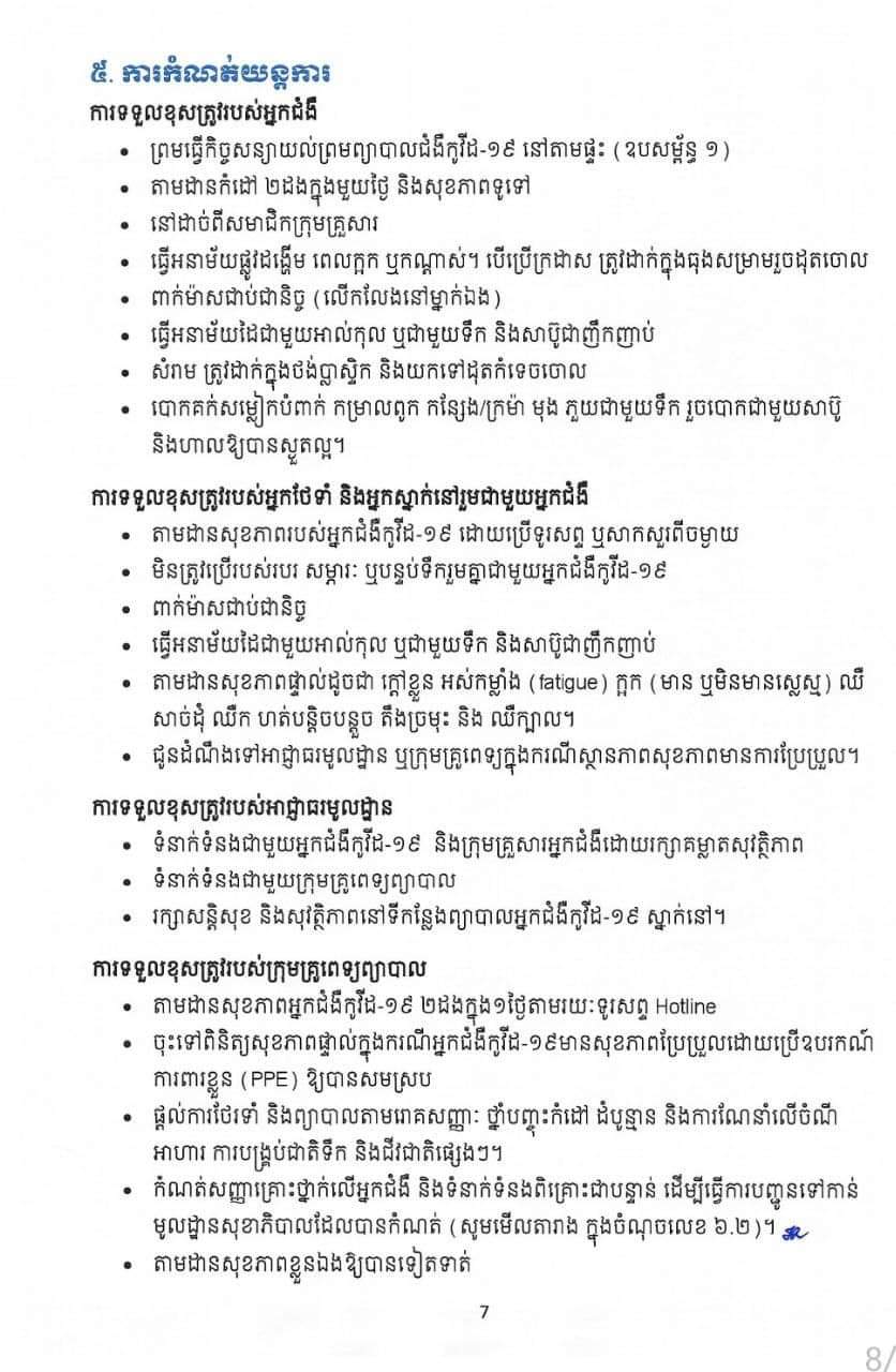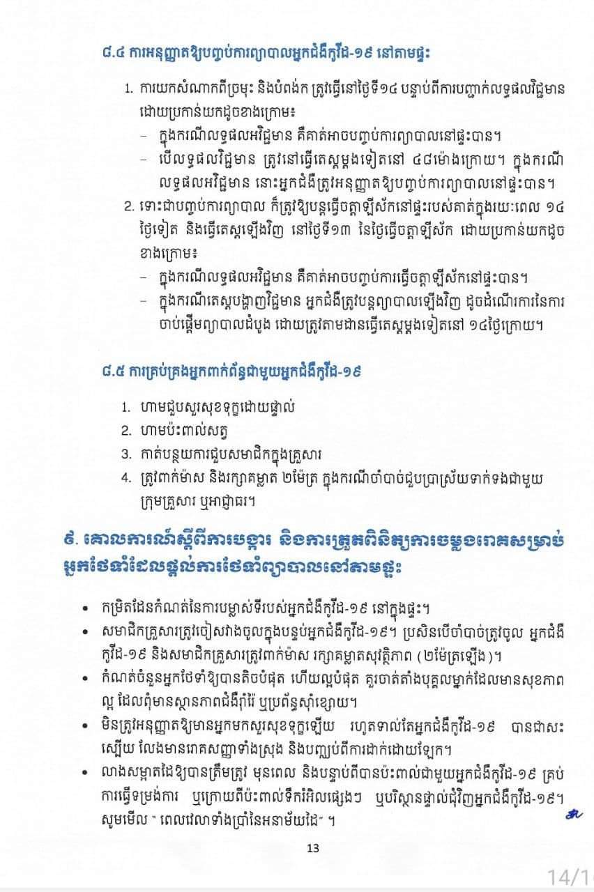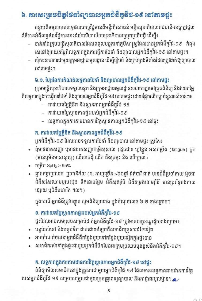 សូមជម្រាបថា៖ ការព្យាបាលអ្នកជំងឺកូវីដ១៩នៅតាមផ្ទះ គឺសម្រាប់តែអ្នកជំងឺស្រាលប៉ុណ្ណោះ។