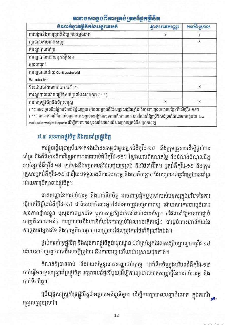 ដោយឡែកអ្នកជំងឺធ្ងន់ គឺត្រូវដាក់ព្យាបាលនៅតាមមន្ទីរពេទ្យដដែល៕