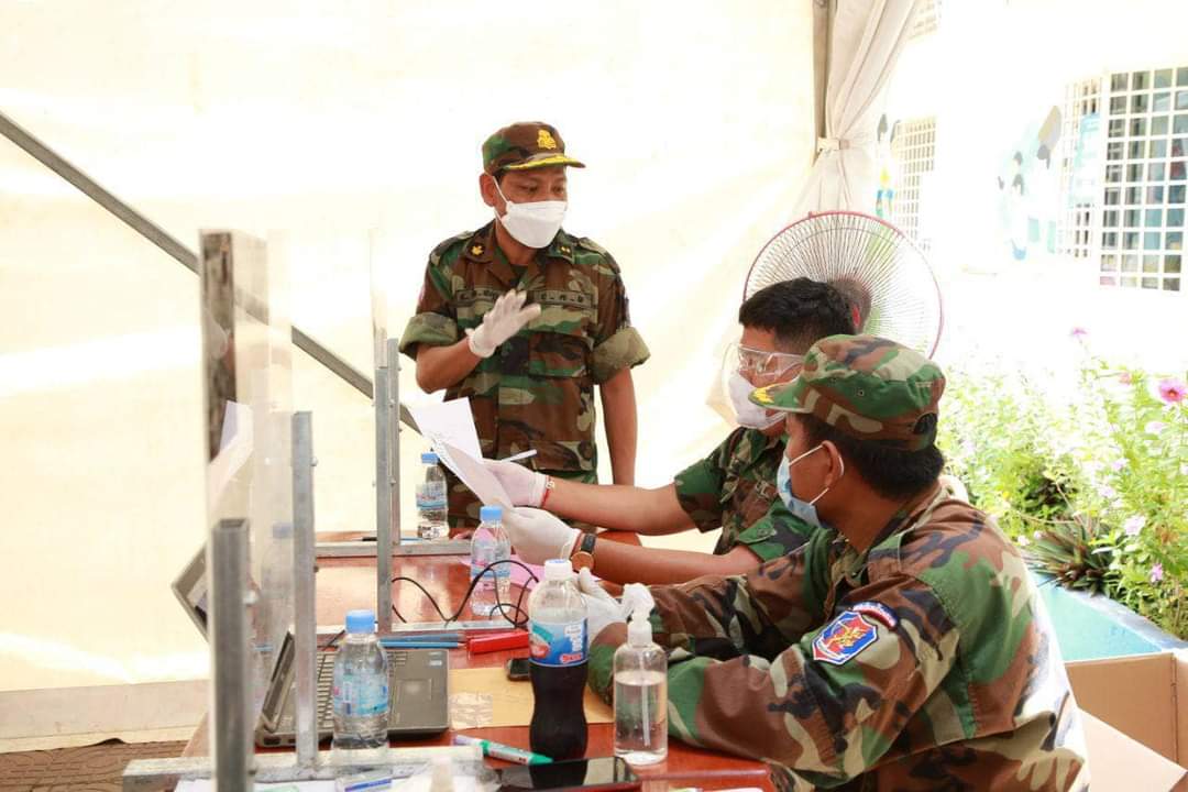 ភ្នំពេញ ៖ នៅព្រឹកថ្ងៃទី២២ ខែមេសា ឆ្នាំ២០២១ ឧត្តមសេនីយ៍ឯក ម៉ៅ សុផាន់ មេបញ្ជាការកងពលតូចលេខ៧០ បានអញ្ជេីញចុះត្រួតពិនិត្យទីតាំងចាក់វ៉ាក់សាំងការពារជំងឺកូវីត-១៩ នៅតាមបណ្តាខណ្ឌដូចជា៖