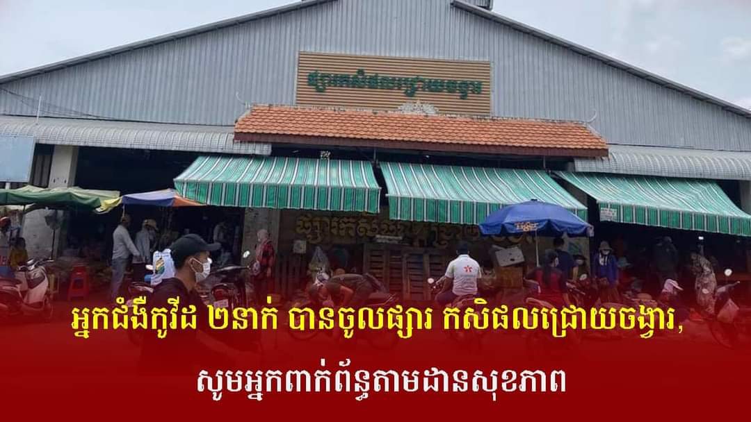 អនុគណៈកម្មការស្រាវជ្រាវជំងឺកូវីដ១៩ ចេញផ្សាយ ថ្ងៃទី២២ ខែមេសា ឆ្នាំ២០២១ នេះ អ្នកជំងឺកូវីដ១៩ ចំនួន២នាក់នេះ ធ្លាប់បានទៅផ្សារកសិផល ជ្រោយចង្វារ នៅថ្ងៃទី១៣ និងថ្ងៃទី១៦ ខែមេសា ឆ្នាំ២០២១ ។