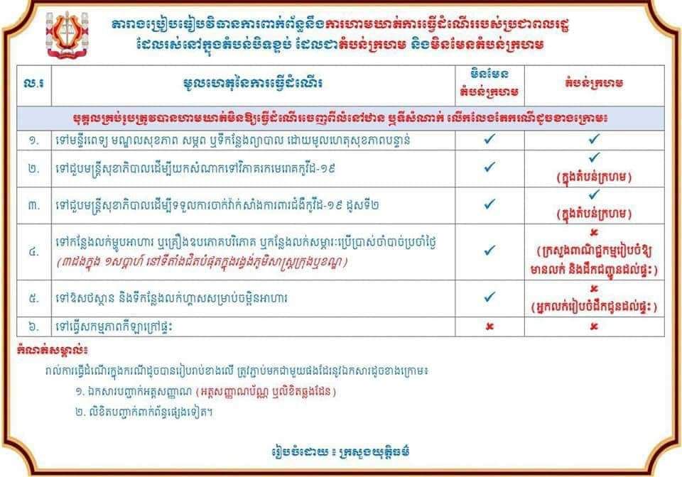 លោកបានស្នើឲ្យប្រជាពលរដ្ឋថា រហូតដល់មុនម៉ោងសូន្យ ថ្ងៃទី២៩ ខែមេសា ឆ្នាំ២០២១ ត្រូវបន្តអនុវត្តនូវរាល់វិធានការ ដែលបានដាក់ចេញកន្លងមកដដែល គឺវិធានការសម្រាប់តំបន់ក្រហម និងវិធានការសម្រាប់តំបន់មិនក្រហម។