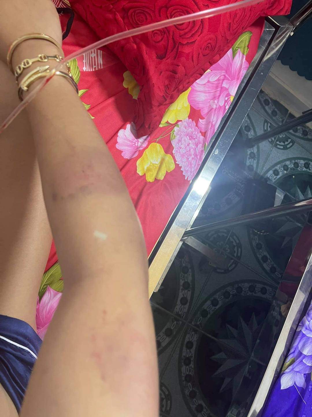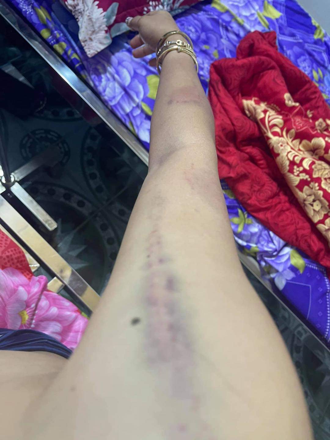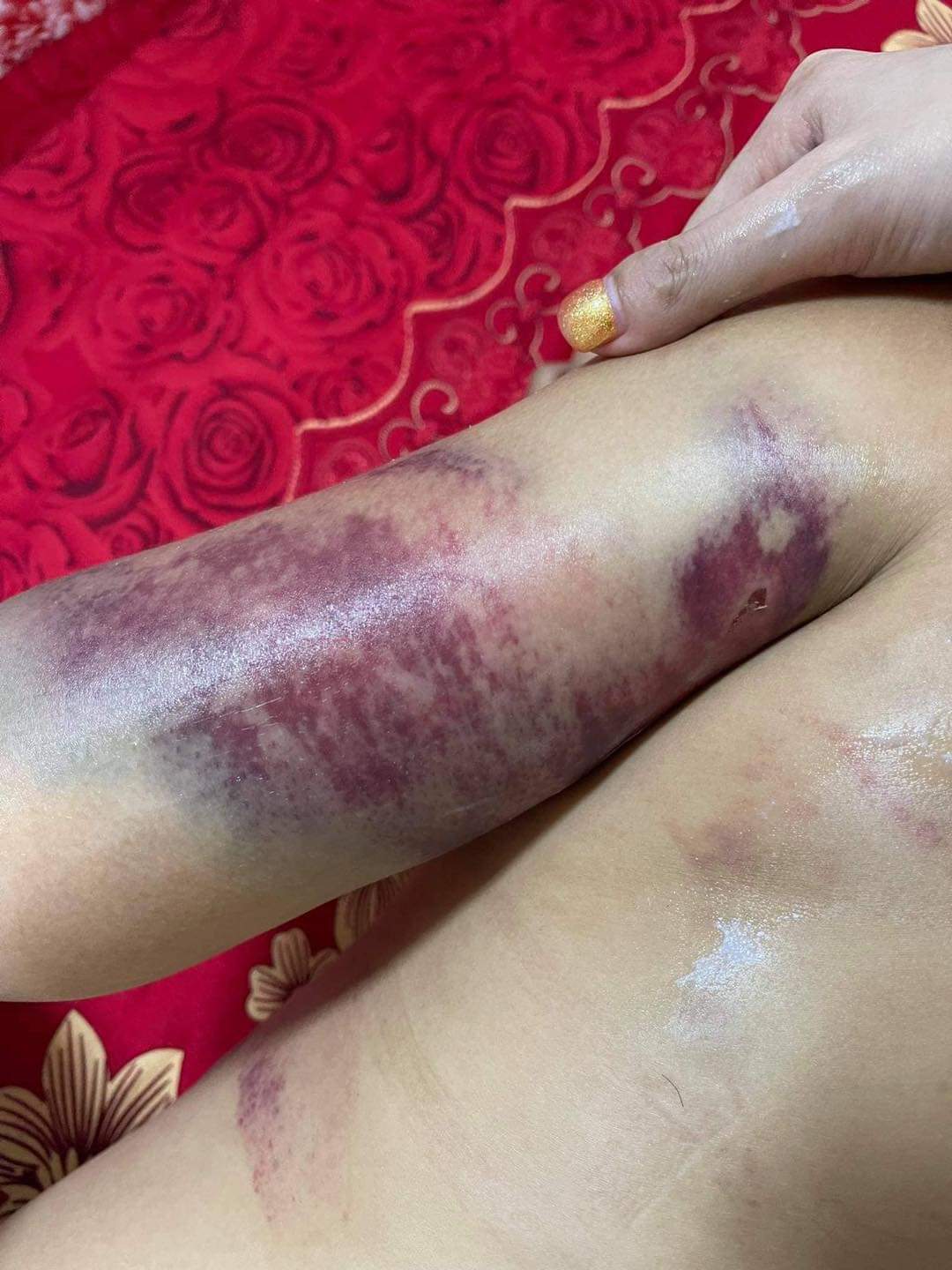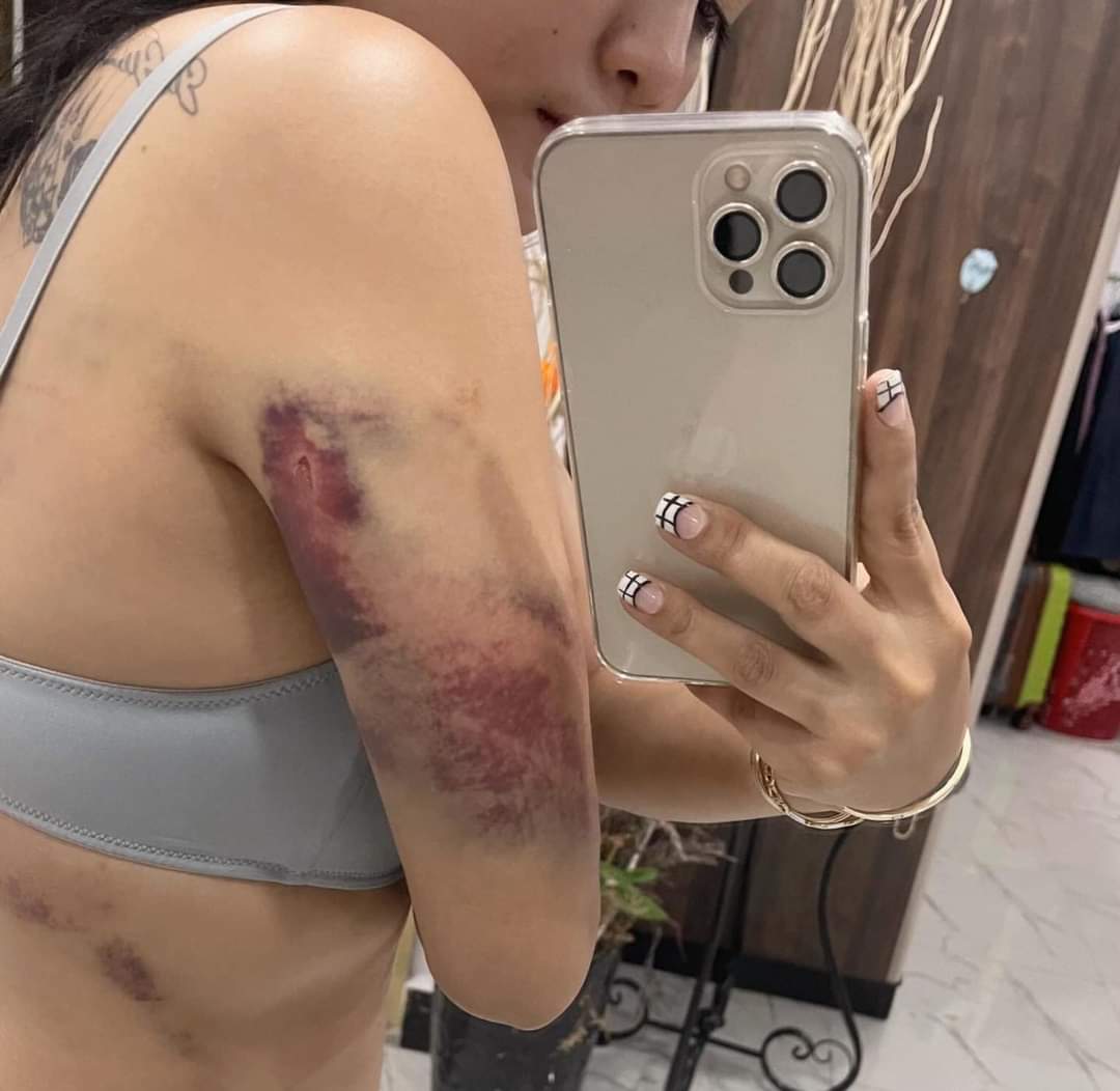 សារបិទភ្នែកស្រមៃមើល សាកស្រមៃមើល ពេលដែលគេបិទទ្វារ មិនឲ្យអ្នកណាចូលមកជួយហើយដកខ្សែក្រវាត់ទំហំប៉ុន៣ម្រាមដៃ វាយក្បាលខ្ញុំប្រហែល១០ដង វាយយកវាយយកមិនដកដៃ ។ ពេលនោះ ខ្ញុំឈឺពេកក៏យកដៃរងហើយគេមិនឈប់ទេគេមកវាយខ្លួនខ្ញុំថែមគ្រប់កន្លែងរហូតខ្ញុំរត់ទៅ កន្លៀតពួនលើកដៃសំពះគេ «បងអើយឈប់វាយទៅ អូនឈឺណាស់ អូនអត់ខុសជាមួយបងទេ ម៉េចបងមិនជឿអូន» តែគេមិនឈប់ដដែលគេវាយយកវាយយកទៀតរហូតខ្ញុំគាំង សុំស្ទះ គេក៏ឈប់មួយភ្លែតហើយគេ មកបោចសក់ខ្ញុំទម្លាក់ពីលើជណ្តើរ ហើយក្បាលខ្ញុំបោកទៅនឹងជញ្ជាំងមួយទំហឹងខាងក្រោយ ហើយគេចាប់បោកខ្ញុំខ្ទប់លើកឥដ្ឋហើយខ្ញុំនៅតែយំសំពះអង្វរគាត់ «បងអើយឈប់ទៅអូនឈឺណាស់តែគេមិនស្ដាប់នៅតែដដែល» វាយរហូត ខ្ញុំស្រងល់ ក្រោយមកគេក៏ចាប់អូសខ្ញុំឡើងម៉ូតូទៅផ្ទះខ្ញុំមួយទៀតដែលកូនខ្ញុំនៅទីនោះ ។