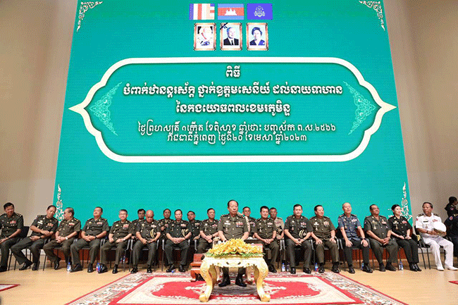 ការលើកឡើងរបស់ សម្តេចពិជ័យសេនា ទៀ បាញ់ បានធ្វើឡើងនៅក្នុងឱកាសដែលសម្តេចបានអញ្ជើញអធិបតីភាព បំពាក់ឋានន្តរស័ក្តិថ្នាក់ នាយឧត្តមសេនីយ៍ ជូនលោកបណ្ឌិត ហ៊ុន ម៉ាណែត អគ្គមេបញ្ជាការរង នៃកងយោធពលខេមរភូមិន្ទ និងជាមេបញ្ជាការកងទ័ពជើងគោក ព្រមទាំងបំពាក់ឋានន្តរស័ក្តិថ្នាក់ «នាយឧត្តមសេនីយ៍» ជូនលោកស្រី ដាំ ដារីនី រដ្ឋលេខាធិការក្រសួងការពារជាតិ និងពាក់ឋានន្តរស័ក្តិថ្នាក់ ឧត្តមសេនីយ៍ឯក ជូនលោកស្រី ម៉ាលី សុជាតា ជាអនុរដ្ឋលេខាធិការក្រសួងការពារជាតិ នៅទីស្តីការក្រសួងការពារជាតិ នាព្រឹកថ្ងៃទី២០ ខែមេសា ឆ្នាំ២០២៣នេះ។