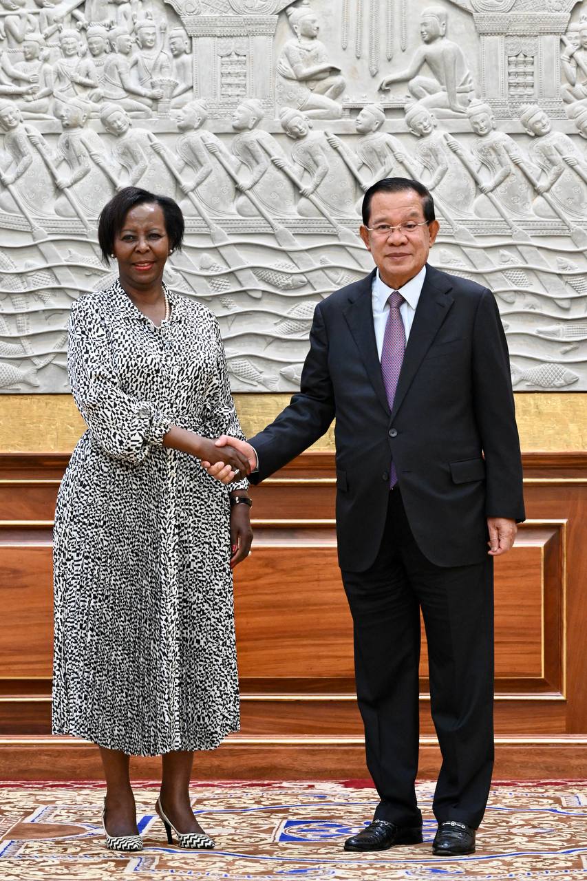 លោកស្រីអគ្គលេខាធិការ បានសម្តែងការអរគុណជាអនេកចំពោះការបដិសណ្ឋារកិច្ច និងការស្វាគមន៍យ៉ាងកក់ក្តៅពីសំណាក់សម្តេចតេជោ ដោយបានអនុញ្ញាតឱ្យលោកស្រី និងគណៈប្រតិភូបានជួបសម្តែងការគួរសម។