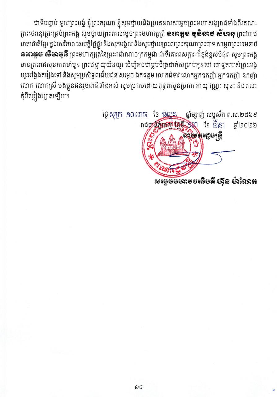 ខាងក្រោមនេះជាសារលិខិតរបស់សម្តេចបវរធិបតី ហ៊ុន ម៉ាណែត៖