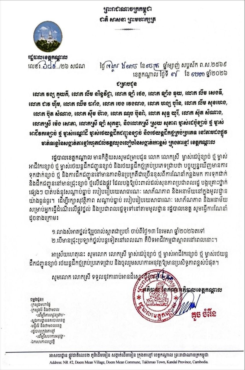 *ទី១៖ តម្រូវឱ្យម្ចាស់អាជីវកម្មលាងសំអាតថ្នល់ឱ្យបានស្អាតជាប្រចាំ ចាប់ពីថ្ងៃទី១៣ ខែមេសា ឆ្នាំ២០២៦ តទៅ។