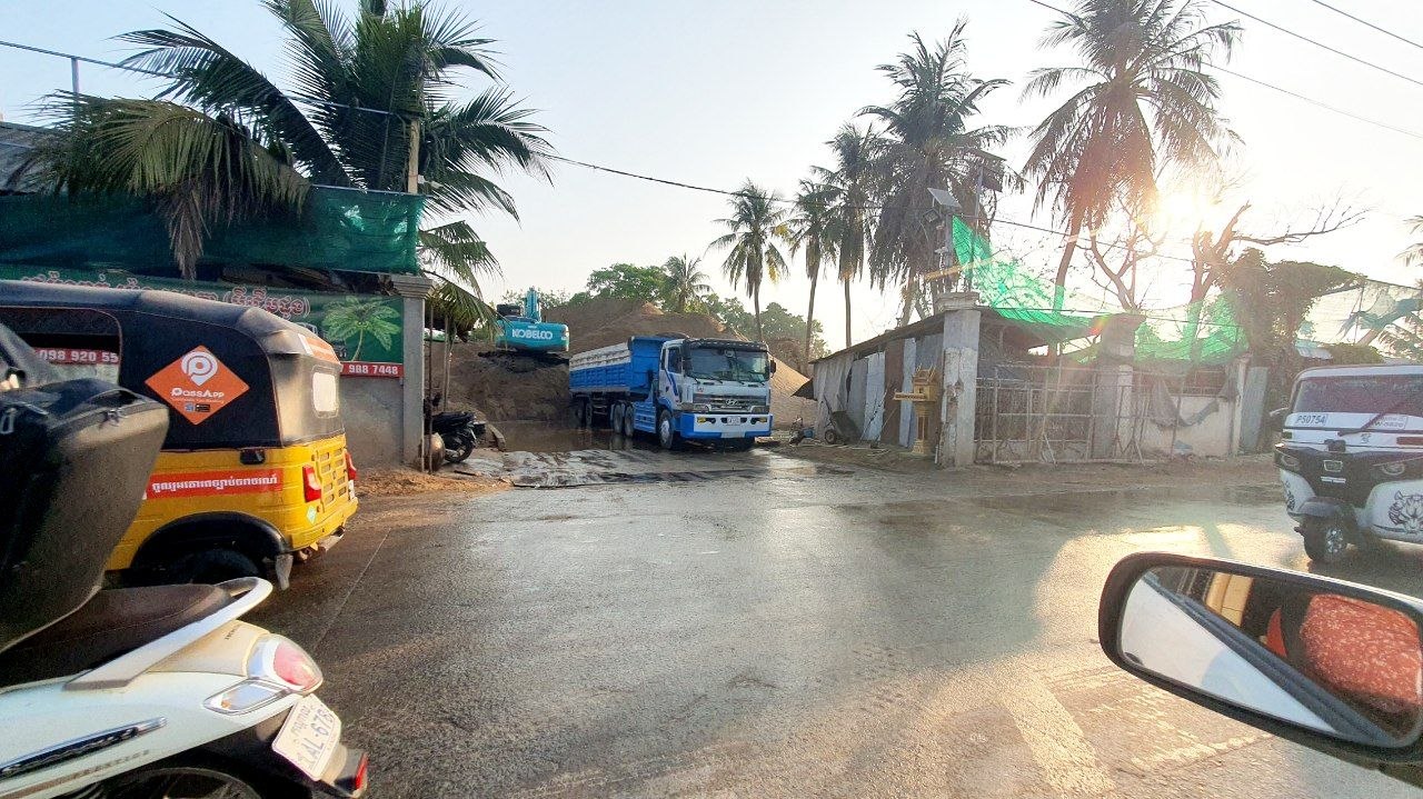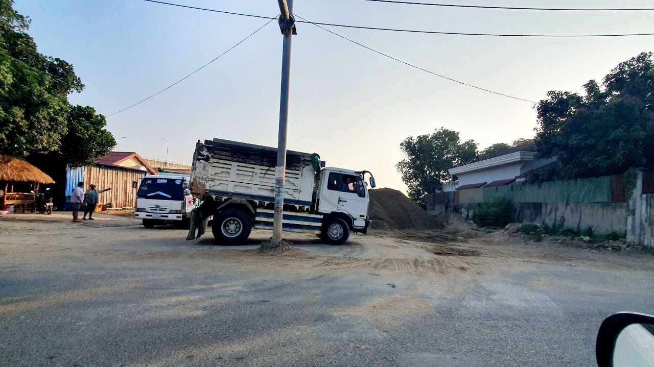 ចំណែកខ្សាច់ជ្រុះរប៉ាត់រប៉ាយ ហូរហៀរប្រឡាក់លើថ្នល់ ដែលបង្កគ្រោះថ្នាក់សម្រាប់អ្នកជិះម៉ូតូ ជិះកង់នាពេលកន្លងទៅ៕