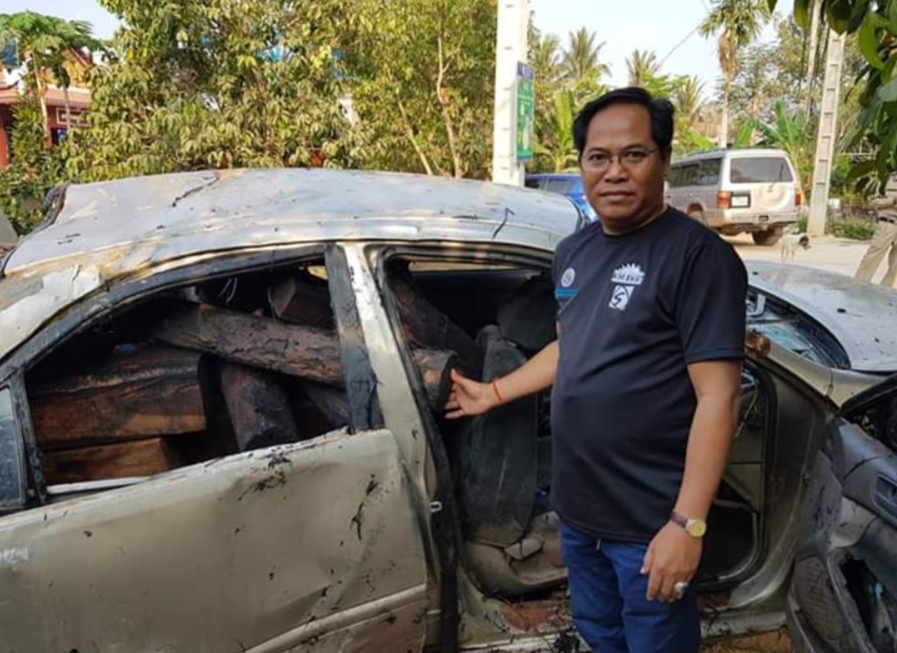 ឡានបាឡែនដឹកឈើធ្នង់ និងគ្រញូង ផ្ទុះកង់ក្រឡាប់ចូលប្រឡាយ